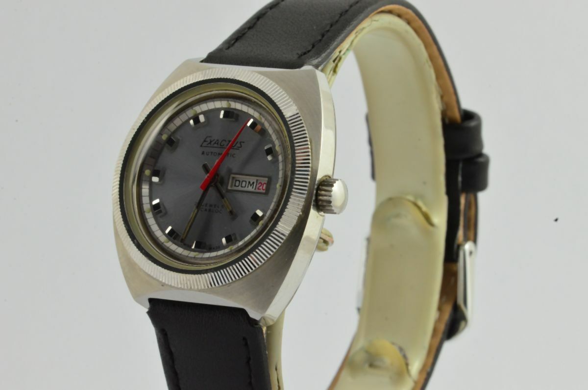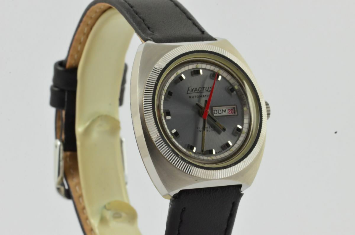 EXACTUS AUTOMATIK DAMEN UHR STAHL VINTAGE MIT LEDER BAND 28MM ARMBANDUHR RAR