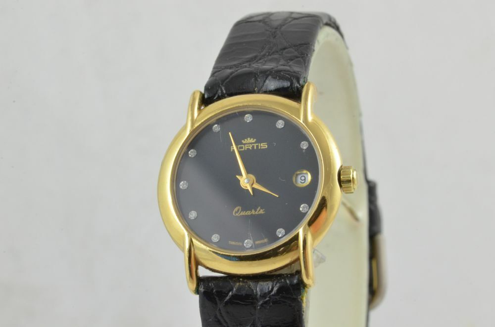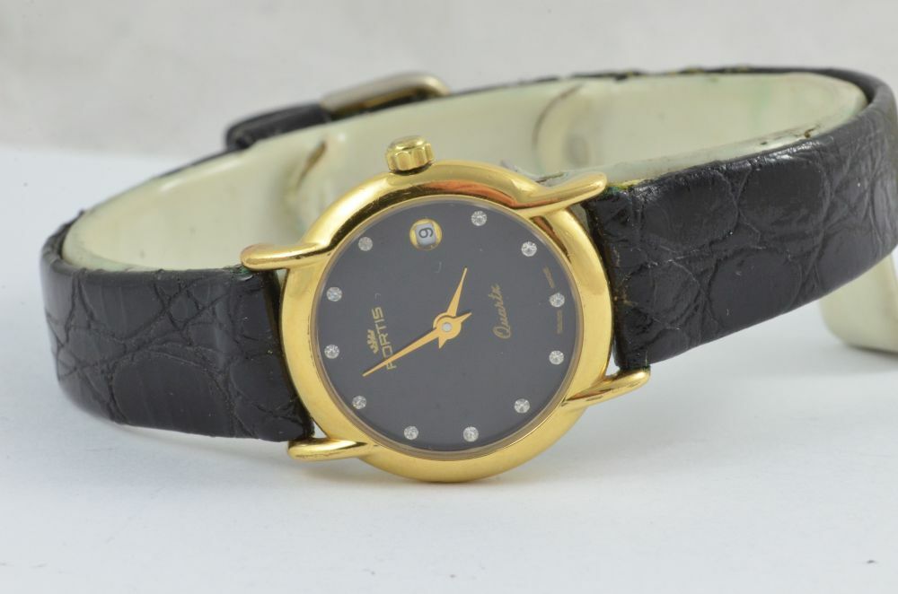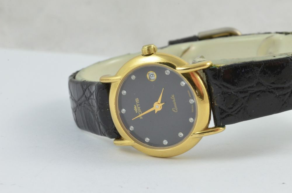 FORTIS QUARZ DAMEN UHR VINTAGE STAHL VERGOLDET 25MM MIT LEDER BAND ARMBANDUHR