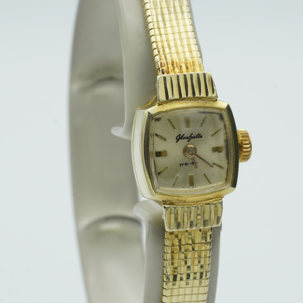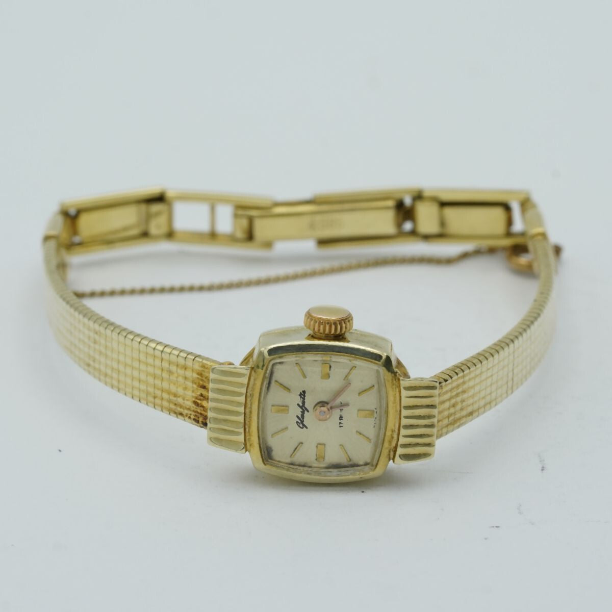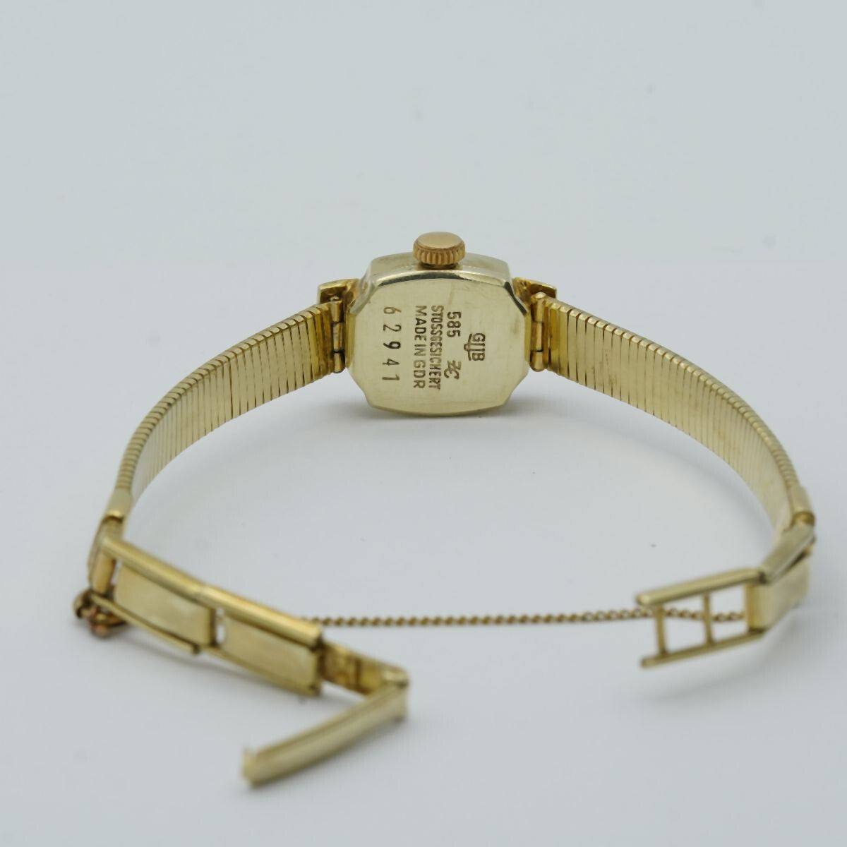 GLASHÜTTE DAMEN UHR 14K GOLD 585 20MM HANDAUFZUG VINTAGE MIT GOLD ARMBAND SELTEN