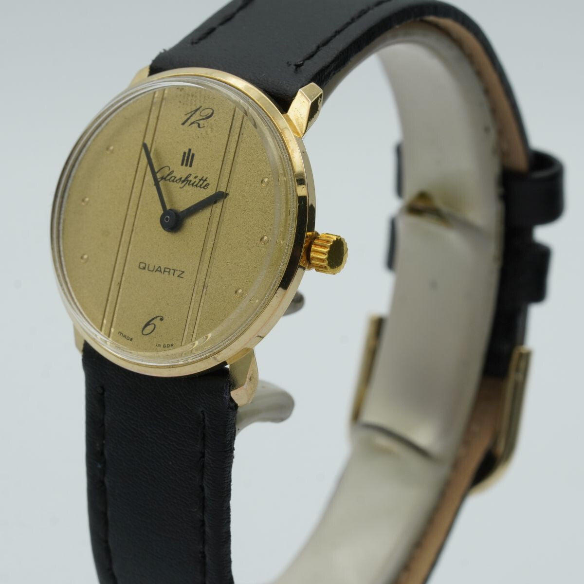GLASHÜTTE DAMEN UHR STAHL VERGOLDET 26MM QUARTZ VINTAGE ARMBANDUHR VINTA GL015