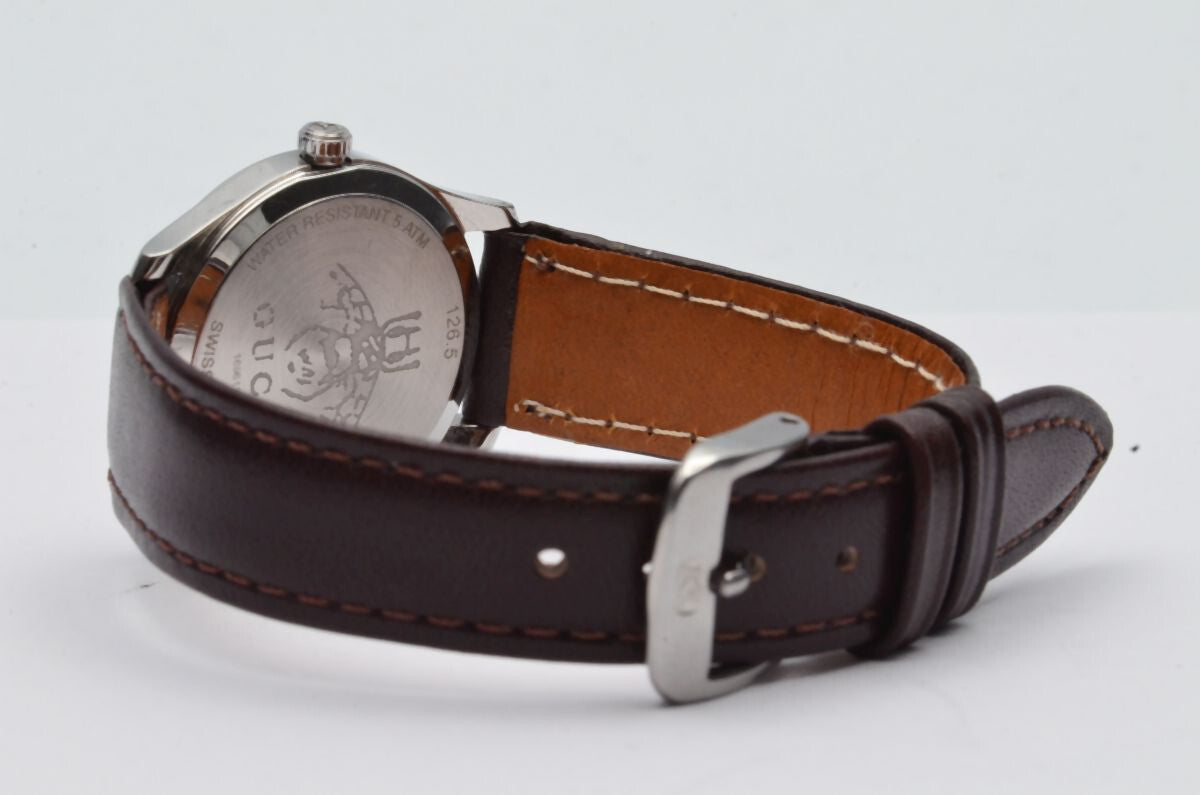 GUCCI DAMEN UHR STAHL 27MM STAHL QUARZ VINTAGE SCHÖNER ZUSTAND 126.5 LEDER 4