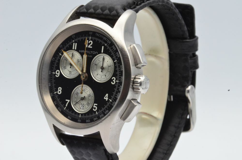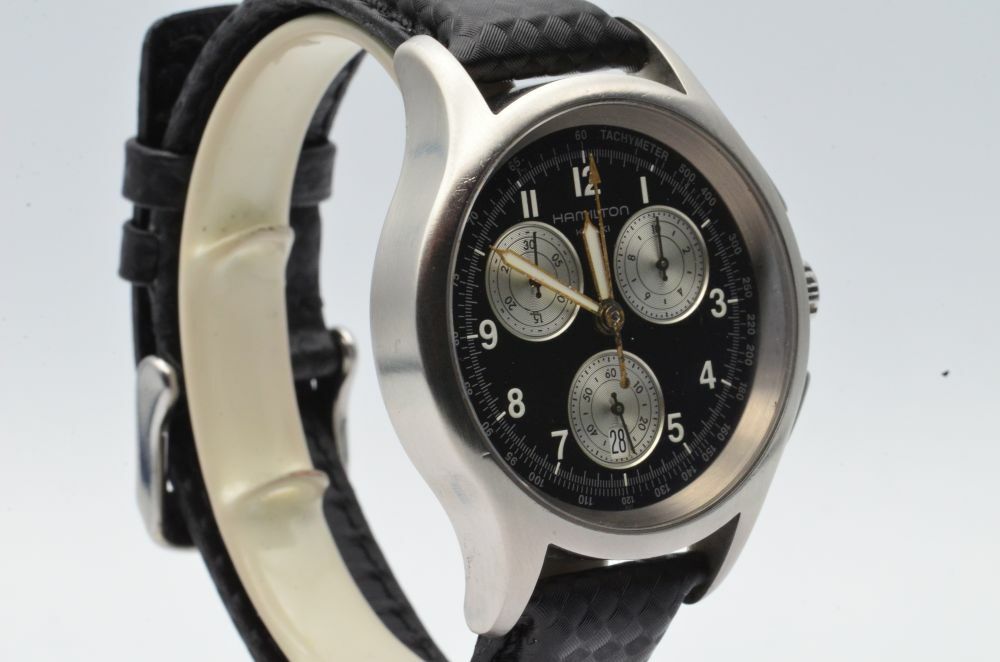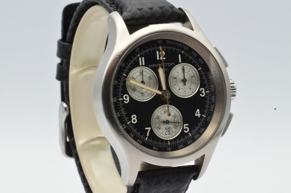 HAMILTON KHAKI QUARZ CHRONO HERREN UHR 40MM VINTAGE RAR MIT LEDER BAND H764120