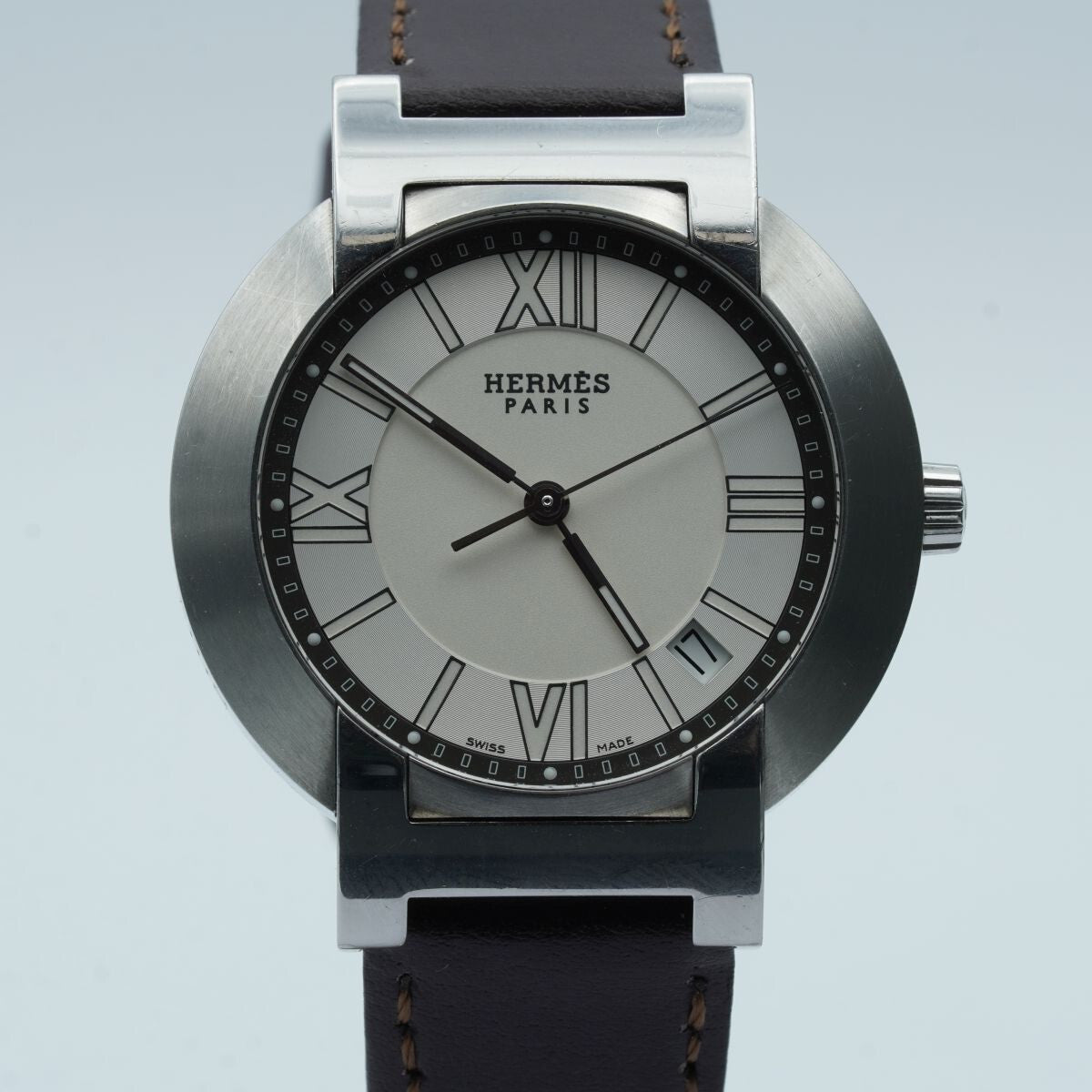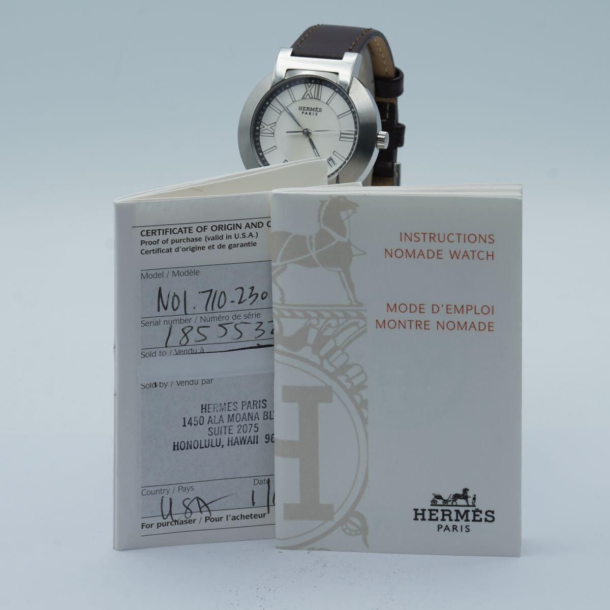 HERMES NOMADE QUARTZ HERREN UHR 36MM STAHL LEDER ARMBAND VINTAGE NO1.710