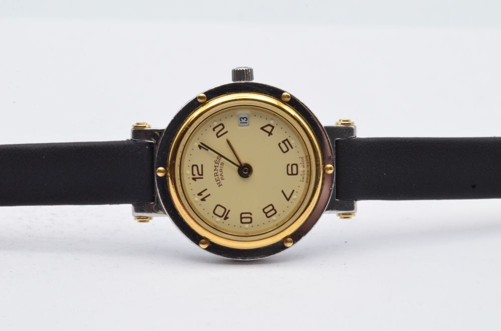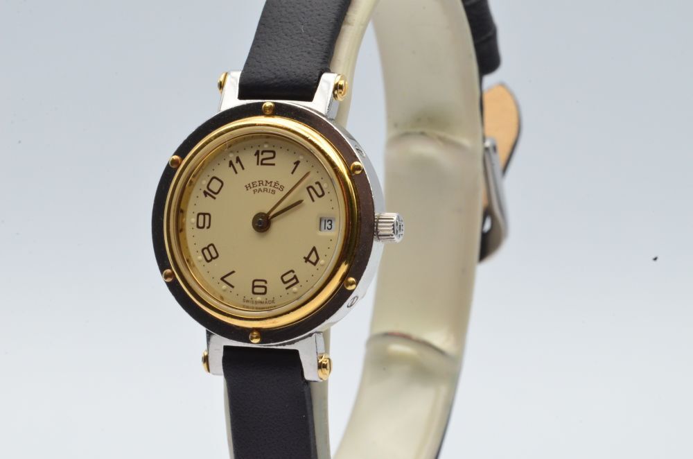 HERMES PARIS QUARTZ 2 DAMEN UHR 25MM STAHL/GOLD CLIPPER ARMBAND VINTAGE CL5.210