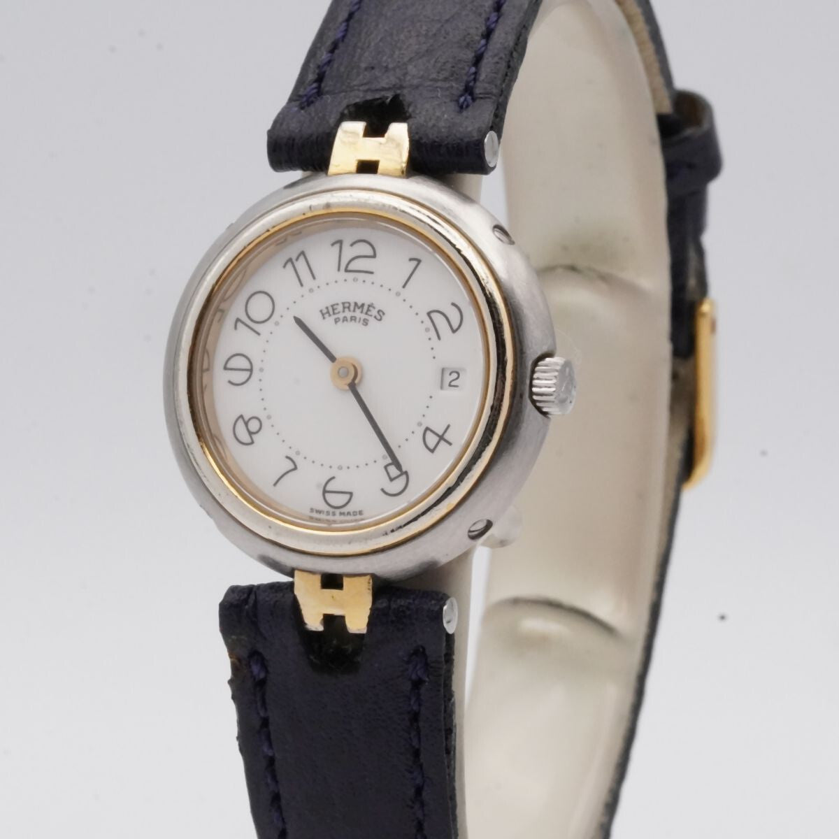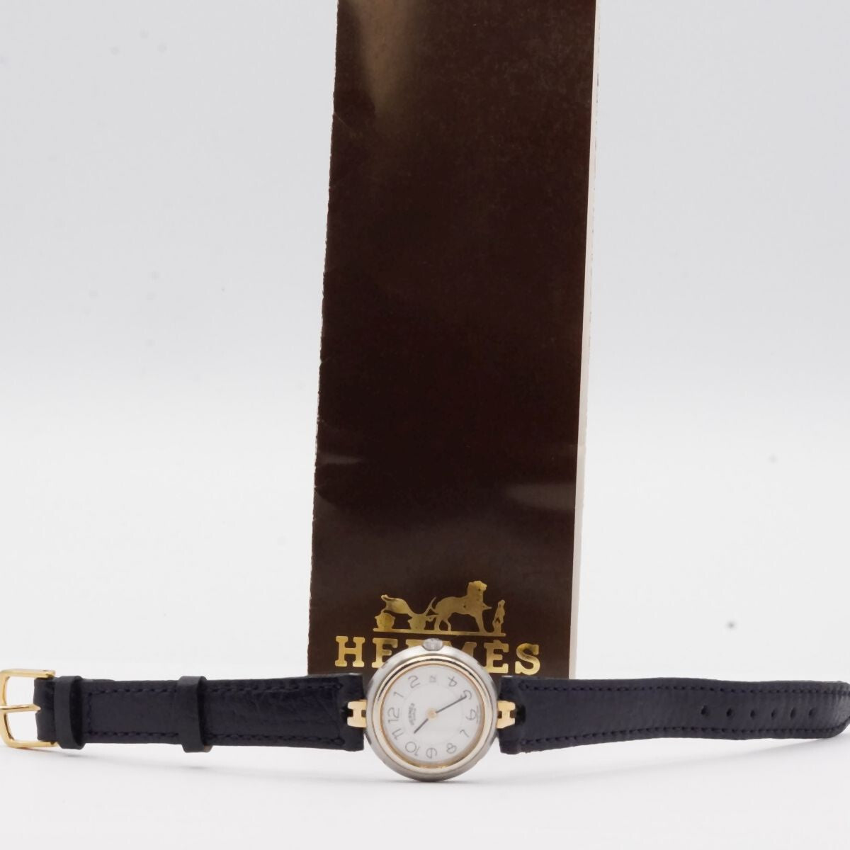 HERMES PARIS QUARTZ 5 DAMEN UHR 25MM STAHL/GOLD CLIPPER ARMBAND VINTAGE CL5.210