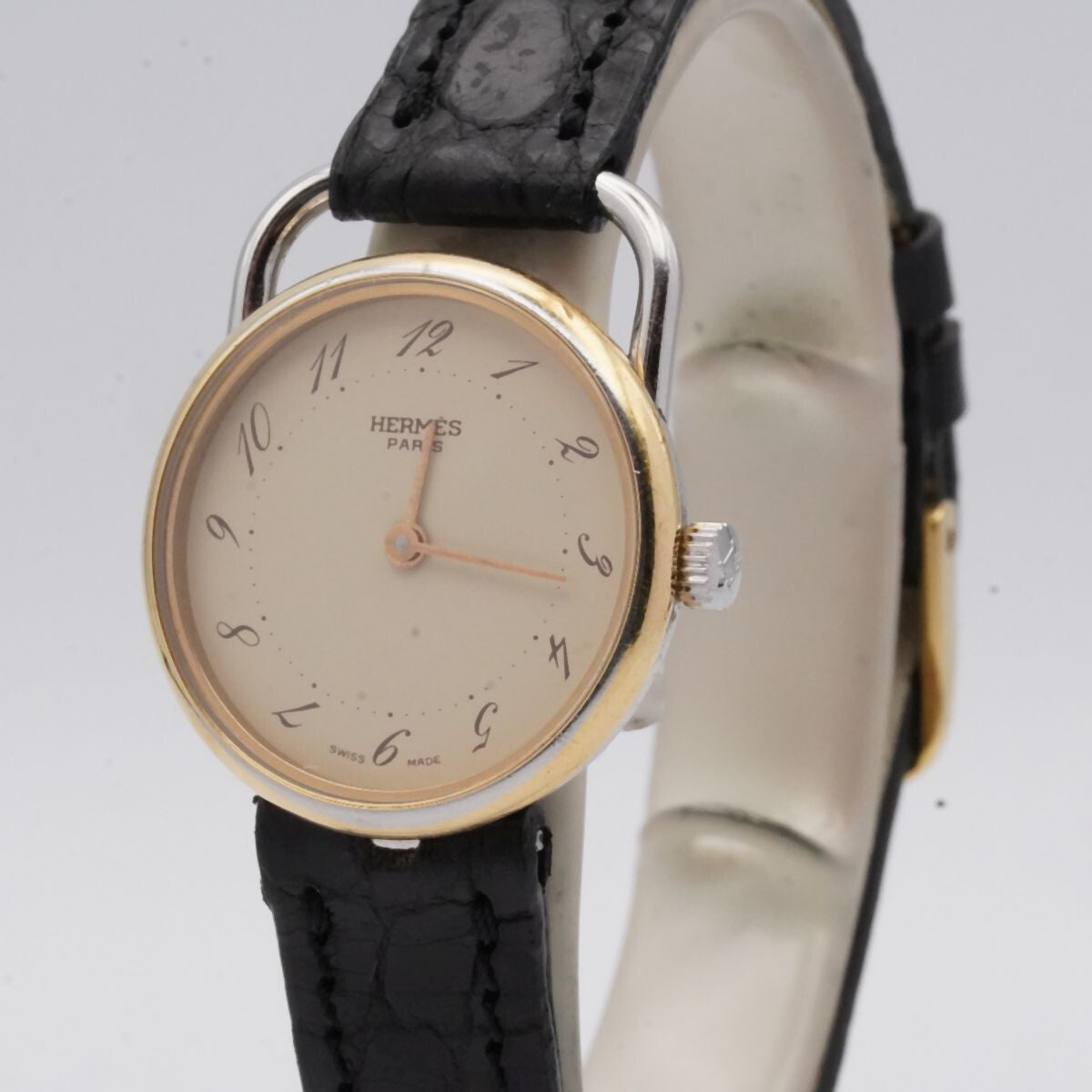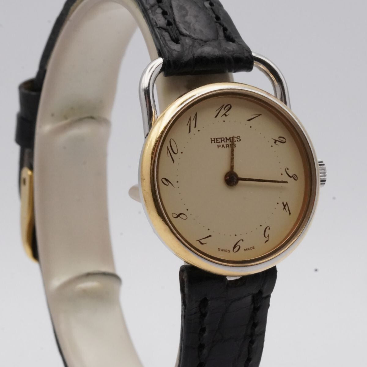 HERMES PARIS QUARTZ 5 DAMEN UHR 27MM STAHL/GOLD CLIPPER ARMBAND VINTAGE CL5.210