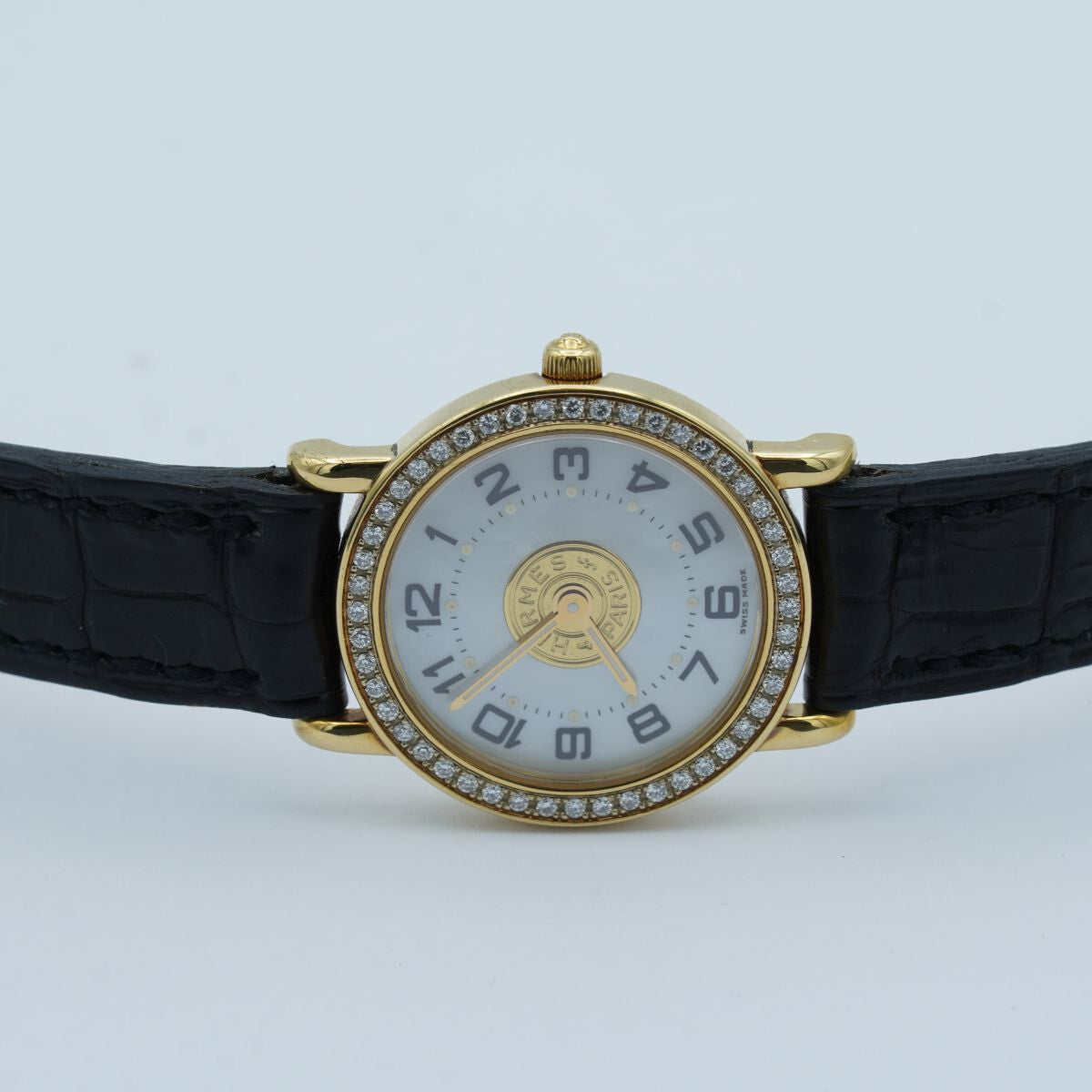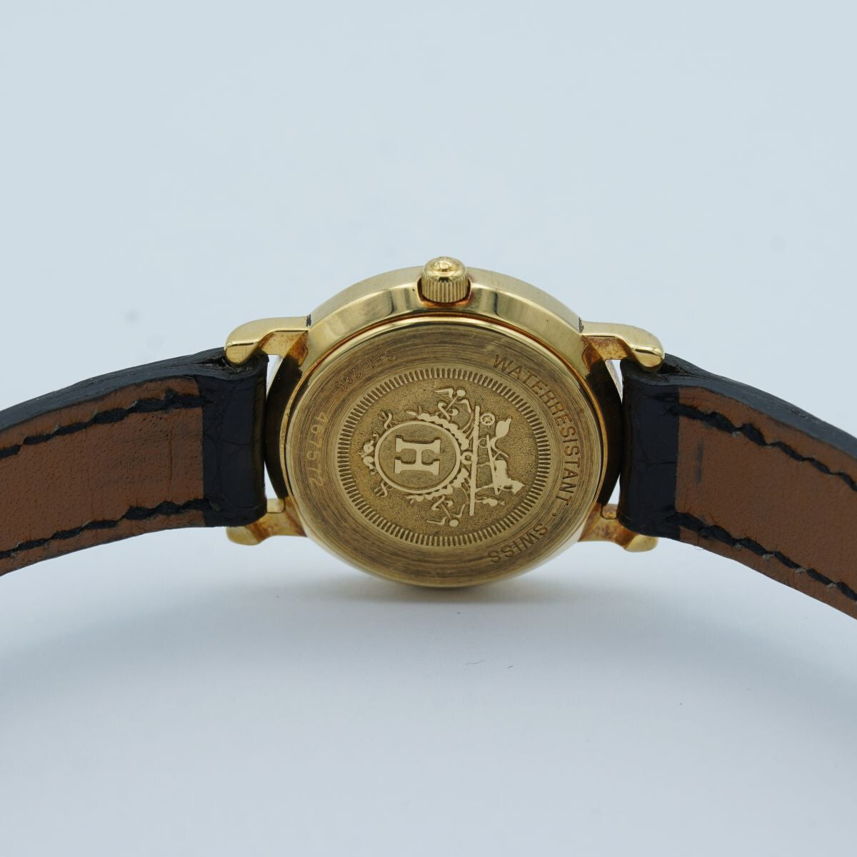 HERMES PARIS QUARTZ DAMEN UHR 25MM 18K 750 GOLD LEDER ARMBAND VINTAGE SE1.286