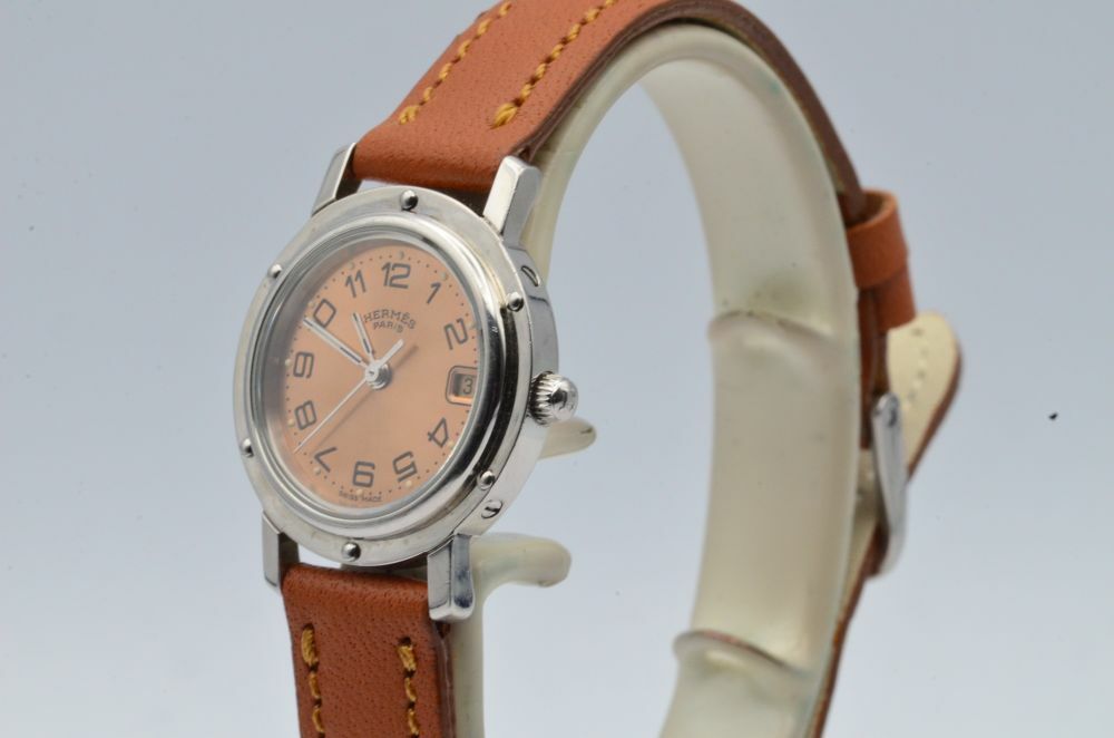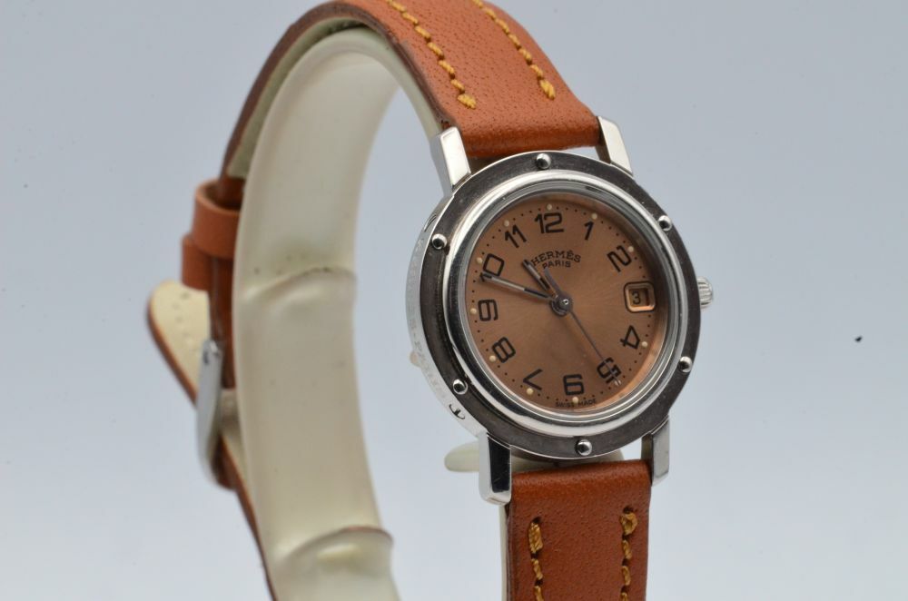 HERMES PARIS QUARTZ DAMEN UHR 25MM STAHL CLIPPER 2 LEDER ARMBAND VINTAGE CL5.210