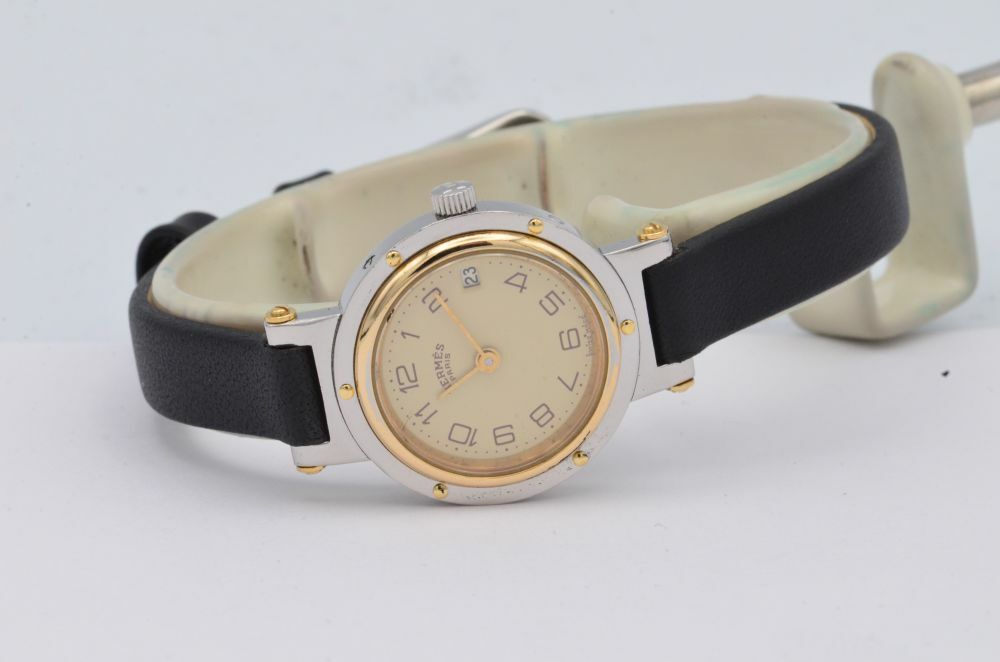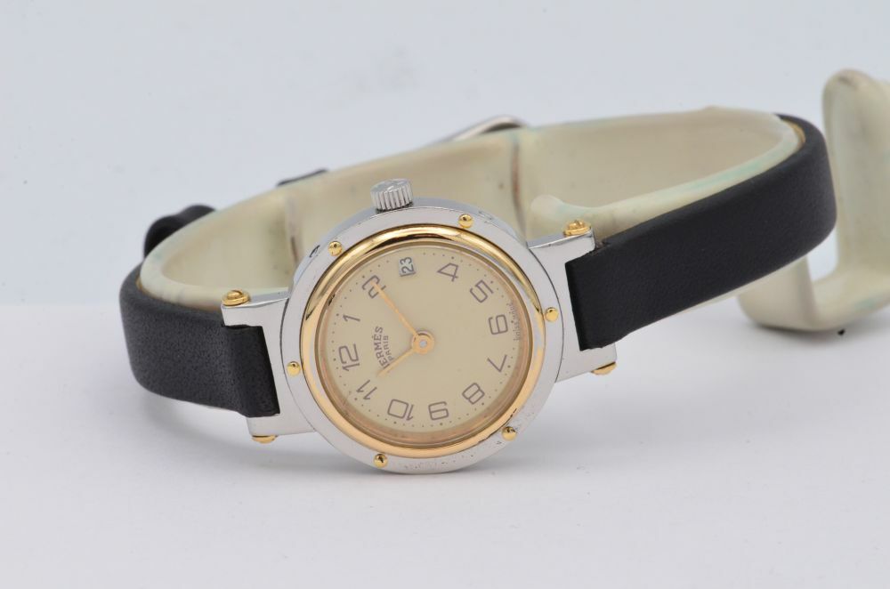 HERMES PARIS QUARTZ DAMEN UHR 25MM STAHL/GOLD CLIPPER ARMBAND VINTAGE CL5.210