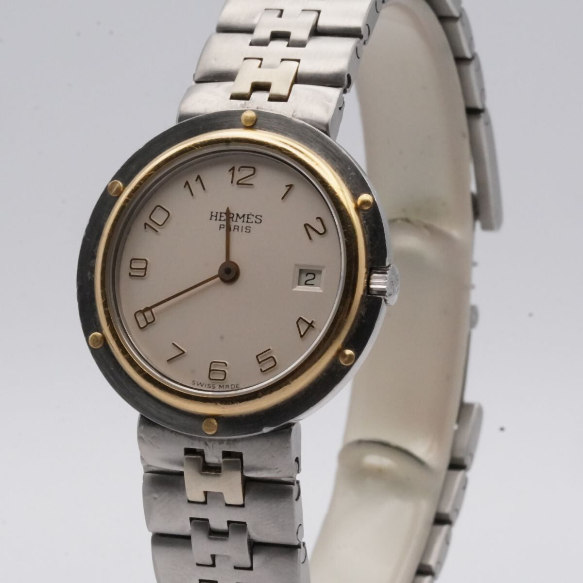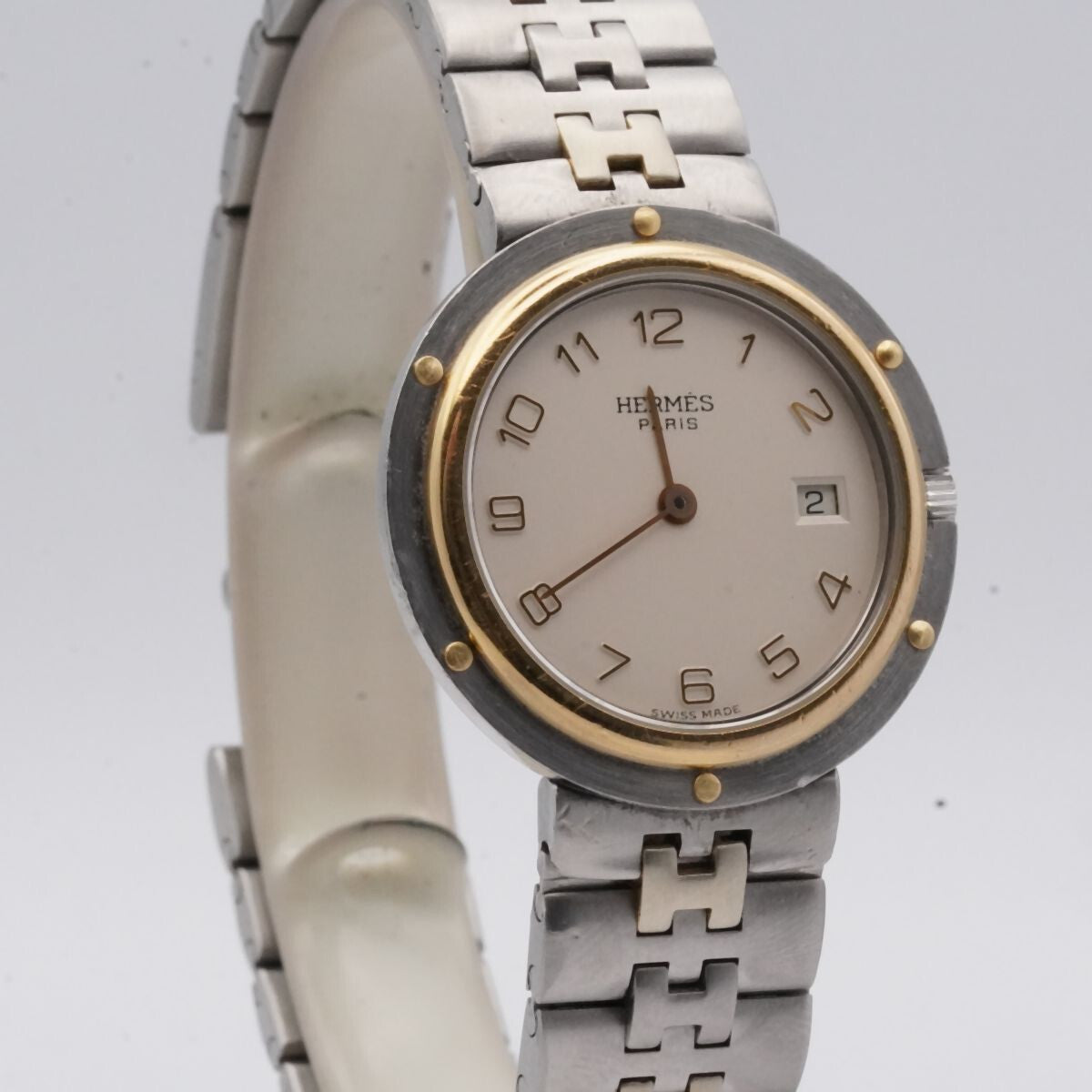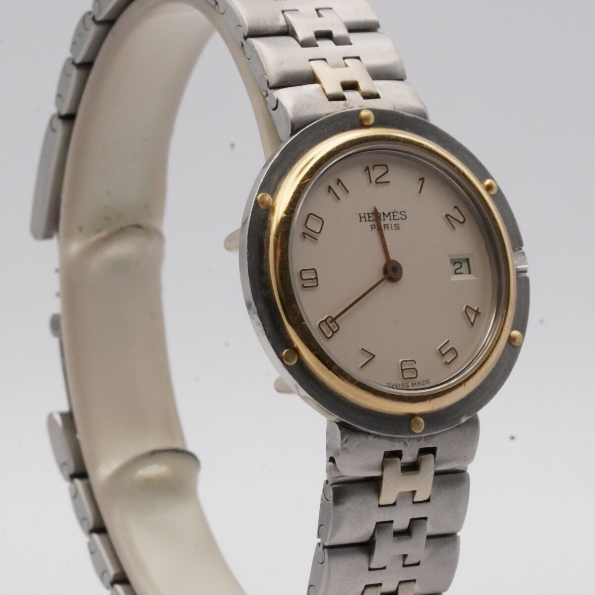 HERMES PARIS QUARTZ DAMEN UHR 25MM STAHL/GOLD CLIPPER STAHL ARMBAND VINTAGE 4