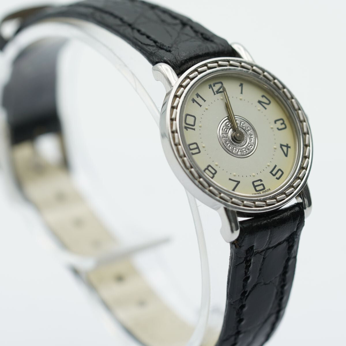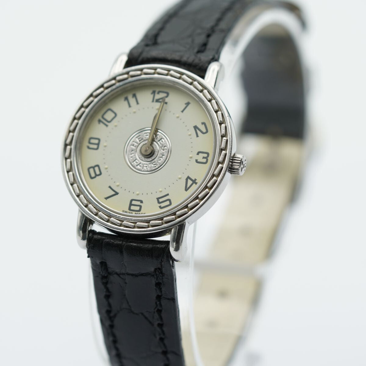 HERMES PARIS SELLIER QUARTZ DAMEN UHR 25MM STAHL LEDER ARMBAND SE4.210