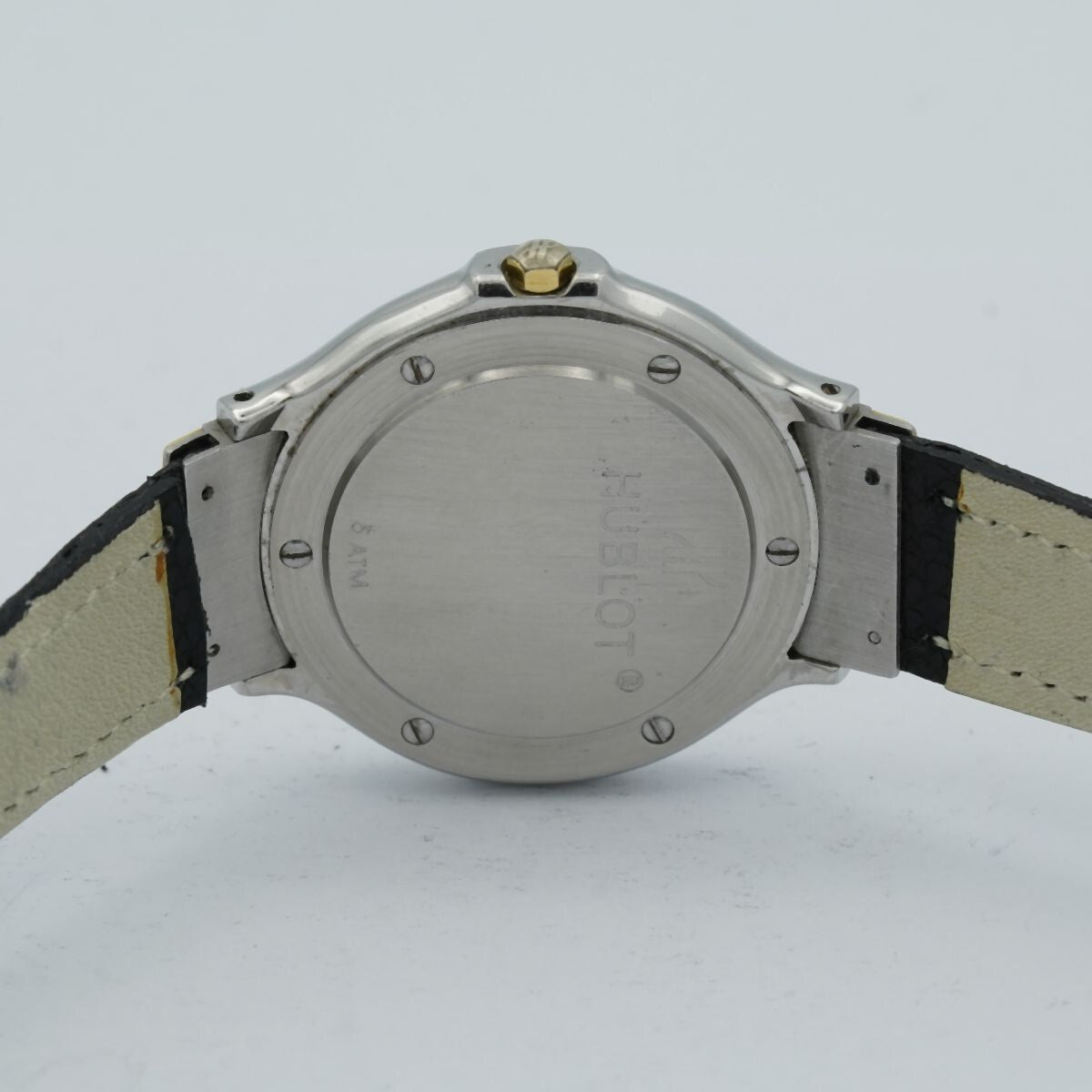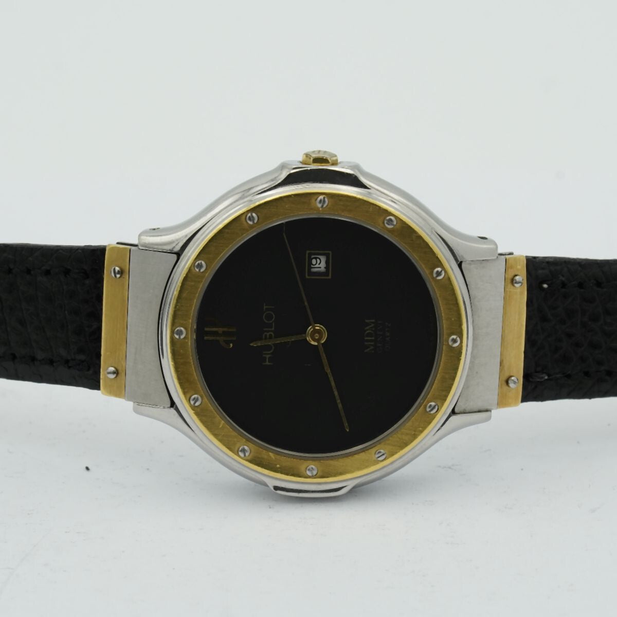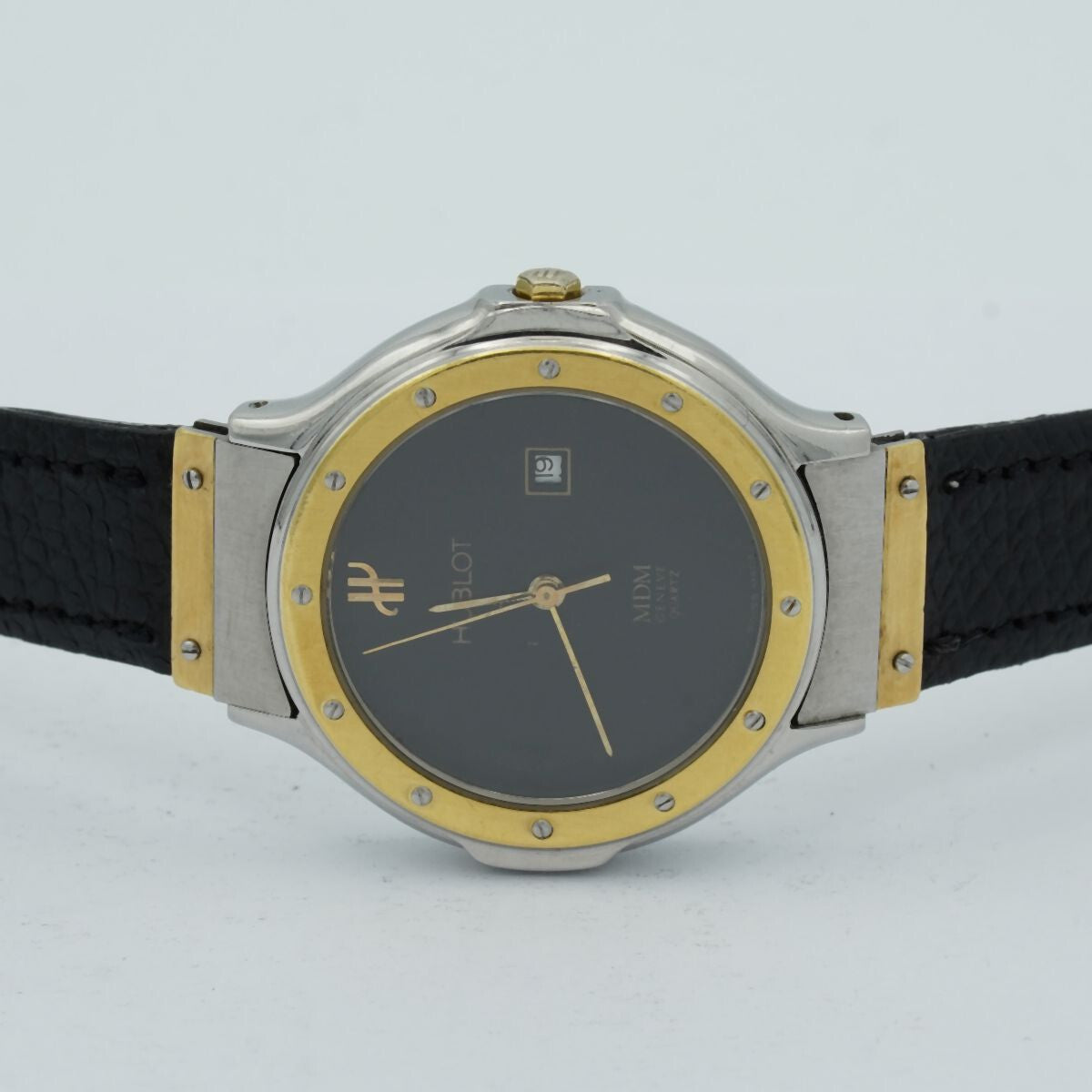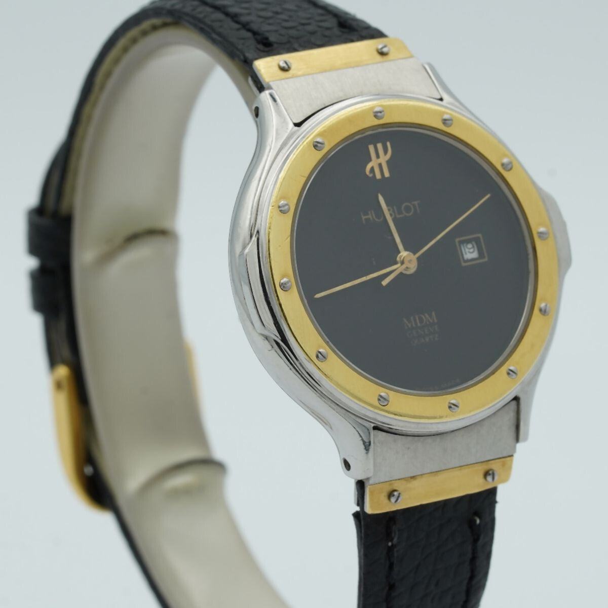 HUBLOT MDM QUARZ DAMEN UHR 28MM STAHL/GOLD LEDER BAND VINTAGE ARMBANDUHR HU002