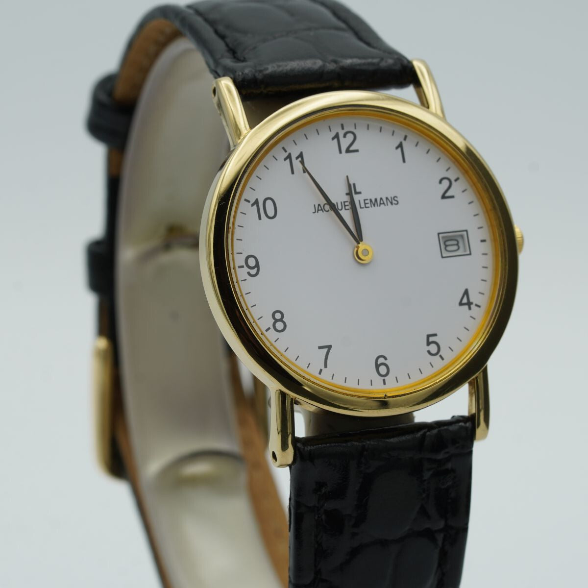 JACQUES LEMANS QUARTZ DAMEN UHR VINTAGE RAR 32MM SCHÖNER ZUSTAND WEISS