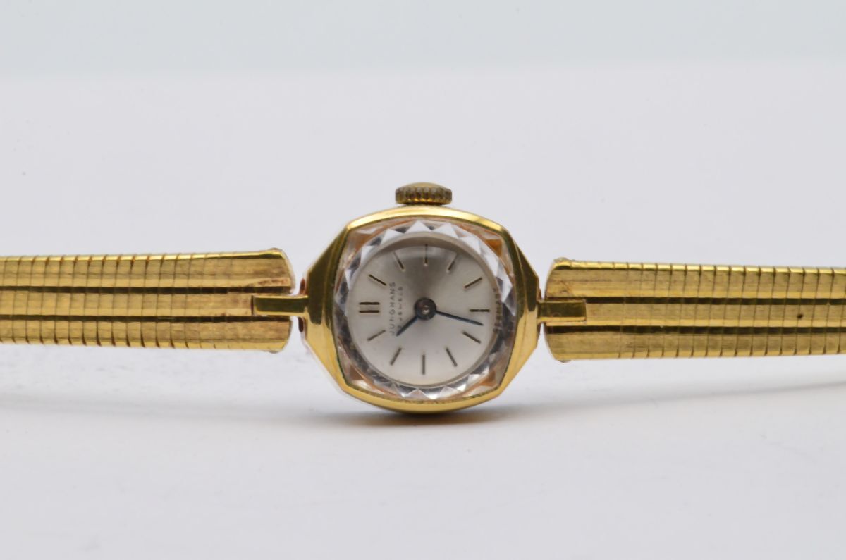 JUNGHANS DAMEN UHR 20MM STAHL VERGOLDET VINTAGE RAR MIT STAHL BAND HANDAUFZUG