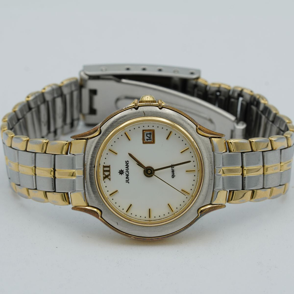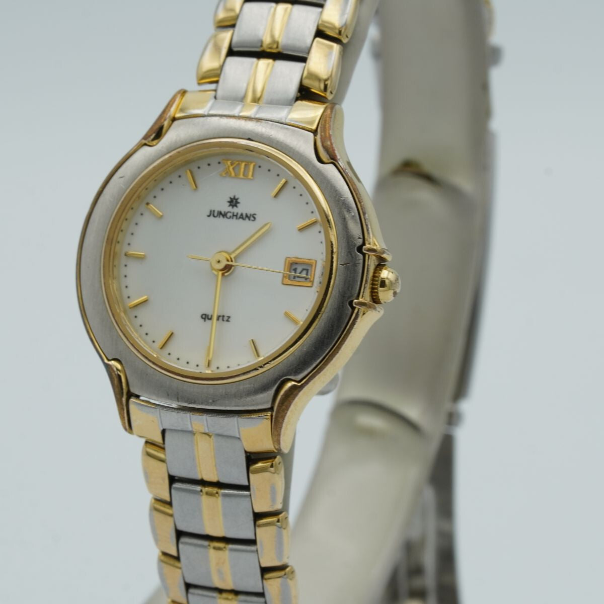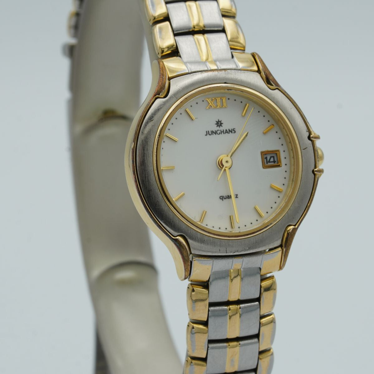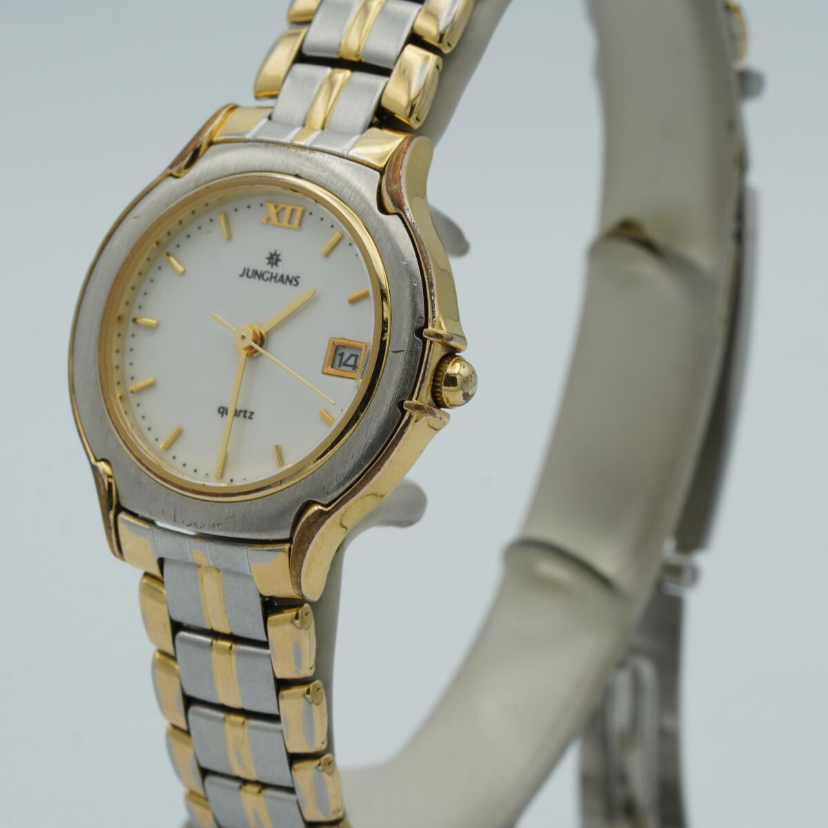 JUNGHANS DAMEN UHR 20MM STAHL VERGOLDET VINTAGE RAR MIT STAHL BAND QUARZ 5