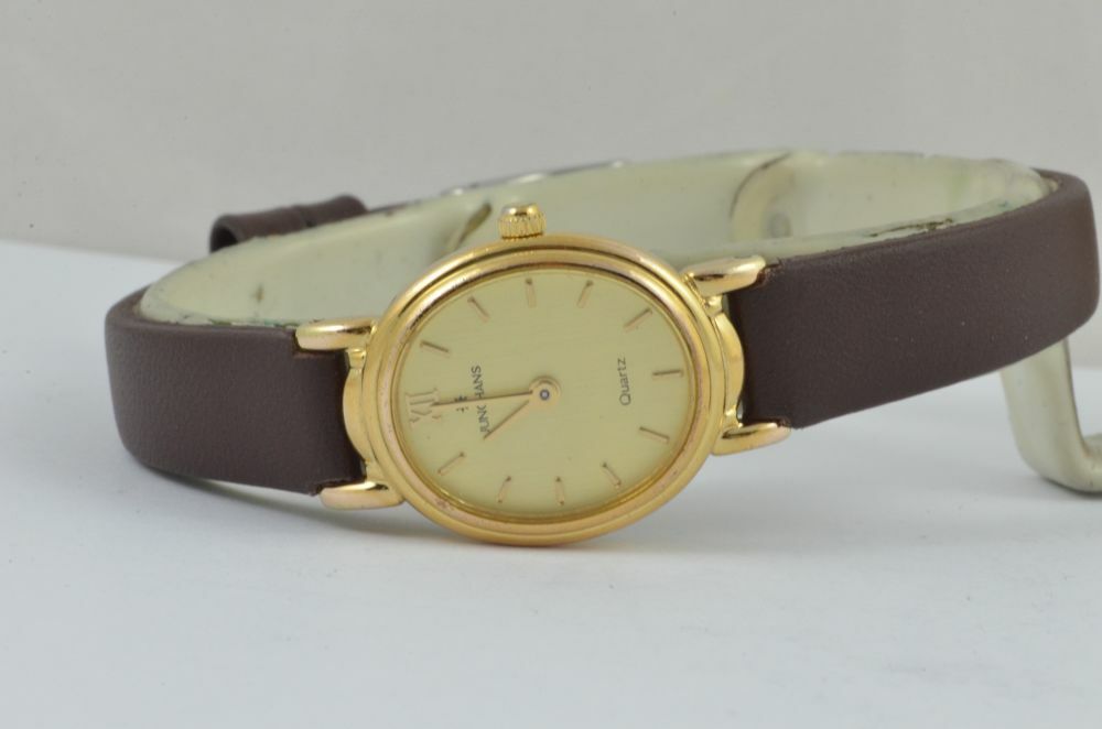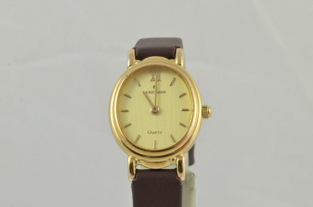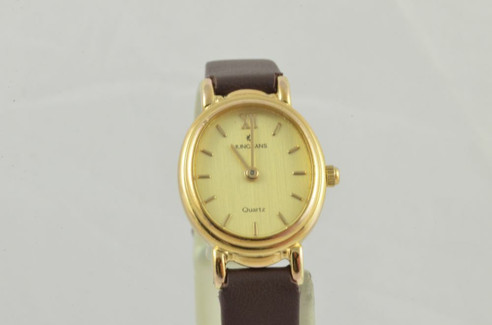 JUNGHANS DAMEN UHR 24MM STAHL VERGOLDET VINTAGE RAR MIT LEDER BAND 2 ARMBANDUHR