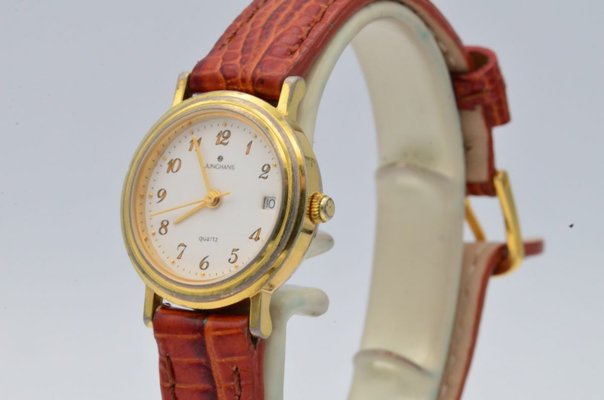 JUNGHANS DAMEN UHR 24MM STAHL VERGOLDET VINTAGE RAR MIT LEDER BAND 8 ARMBANDUHR