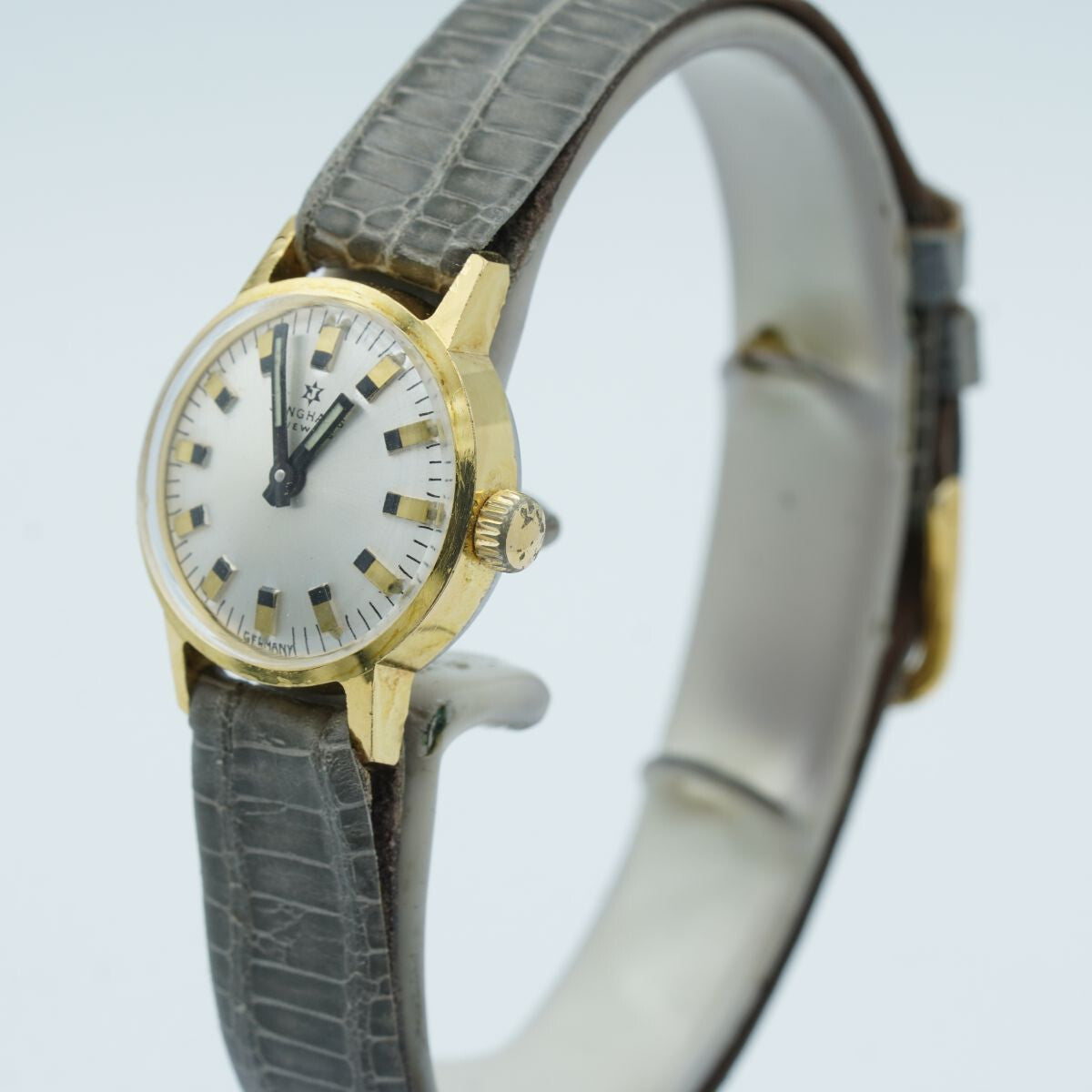 JUNGHANS DAMEN UHR 25MM STAHL VERGOLDET VINTAGE RAR HANDAUFZUG JH043