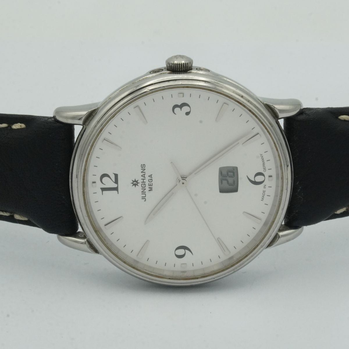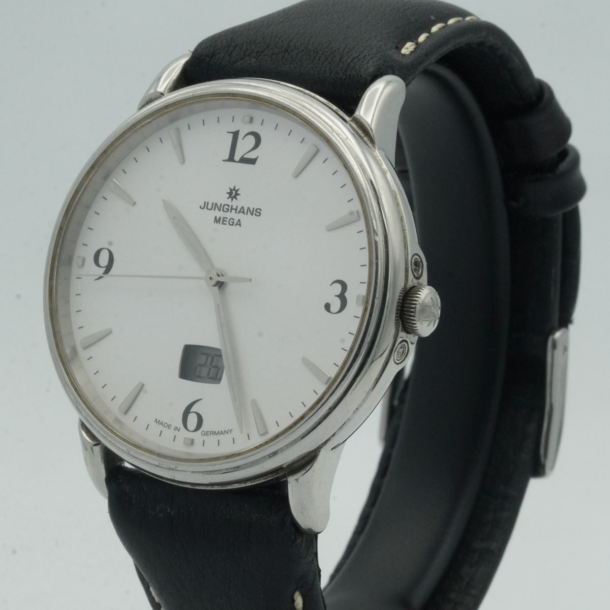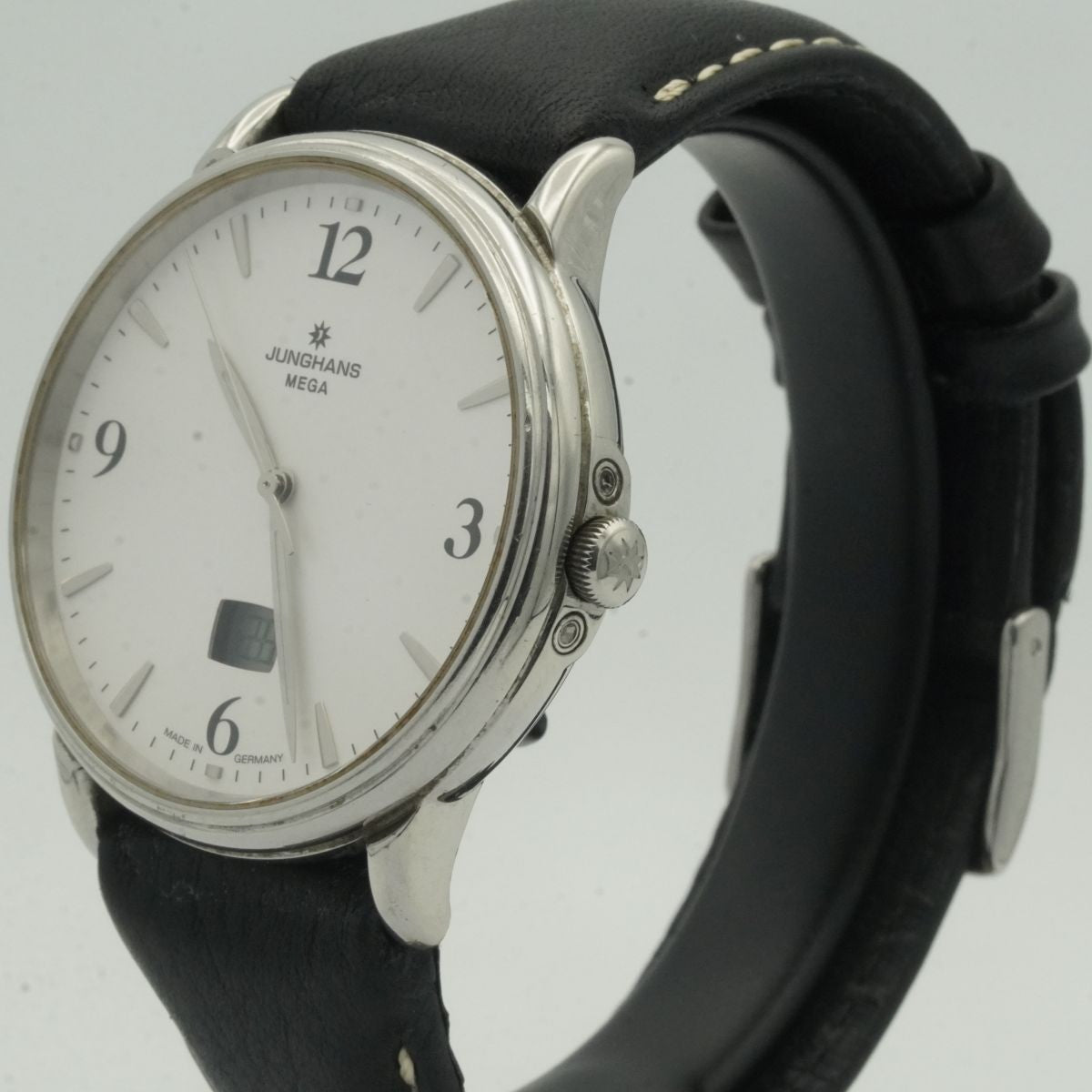 JUNGHANS Mega Quarz 43mm Herrenuhr weiss schöner Zustand