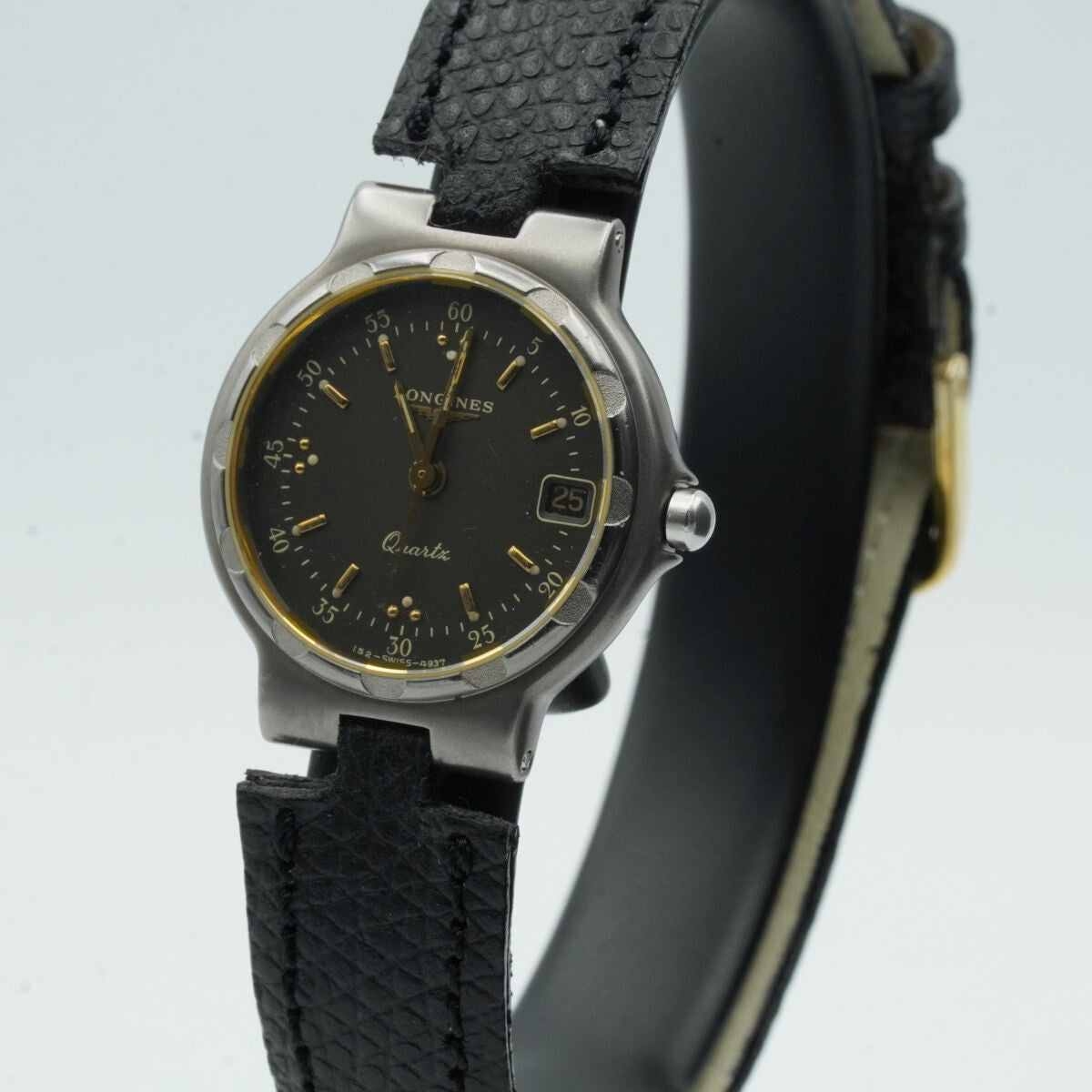 LONGINES CONQUEST DAMEN UHR QUARZ STAHL 25MM 4027 MIT LEDER BAND ARMBANDUHR 2