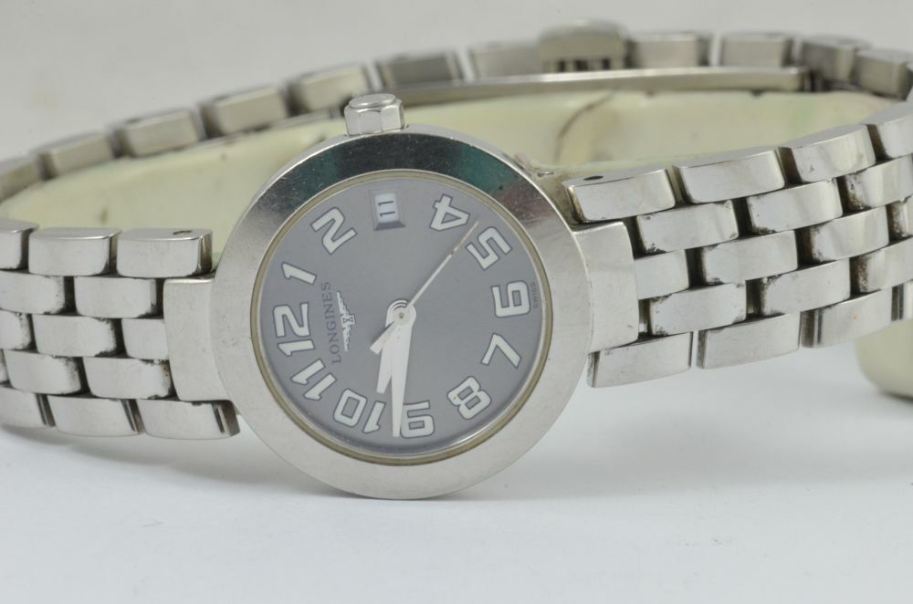 LONGINES CONQUEST DAMEN UHR QUARZ STAHL 25MM + STAHL BAND VINTAGE L5.175.4 L055