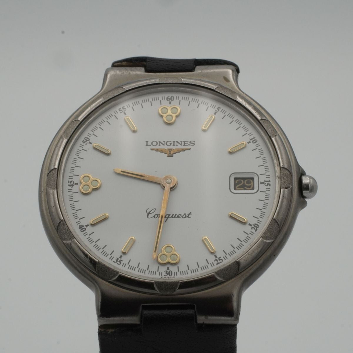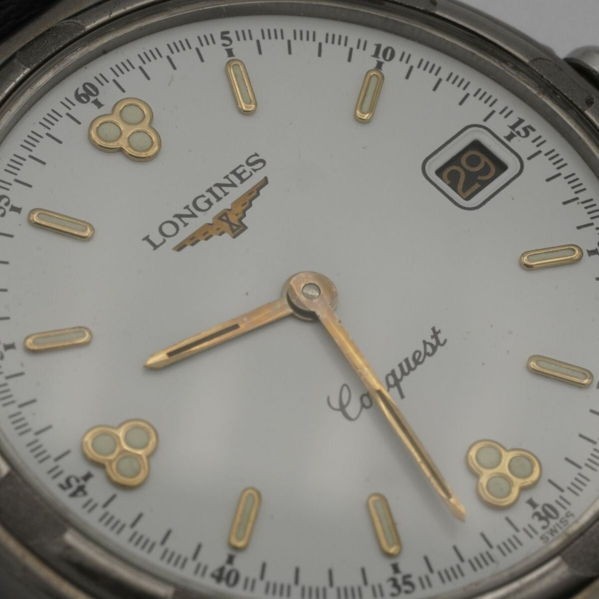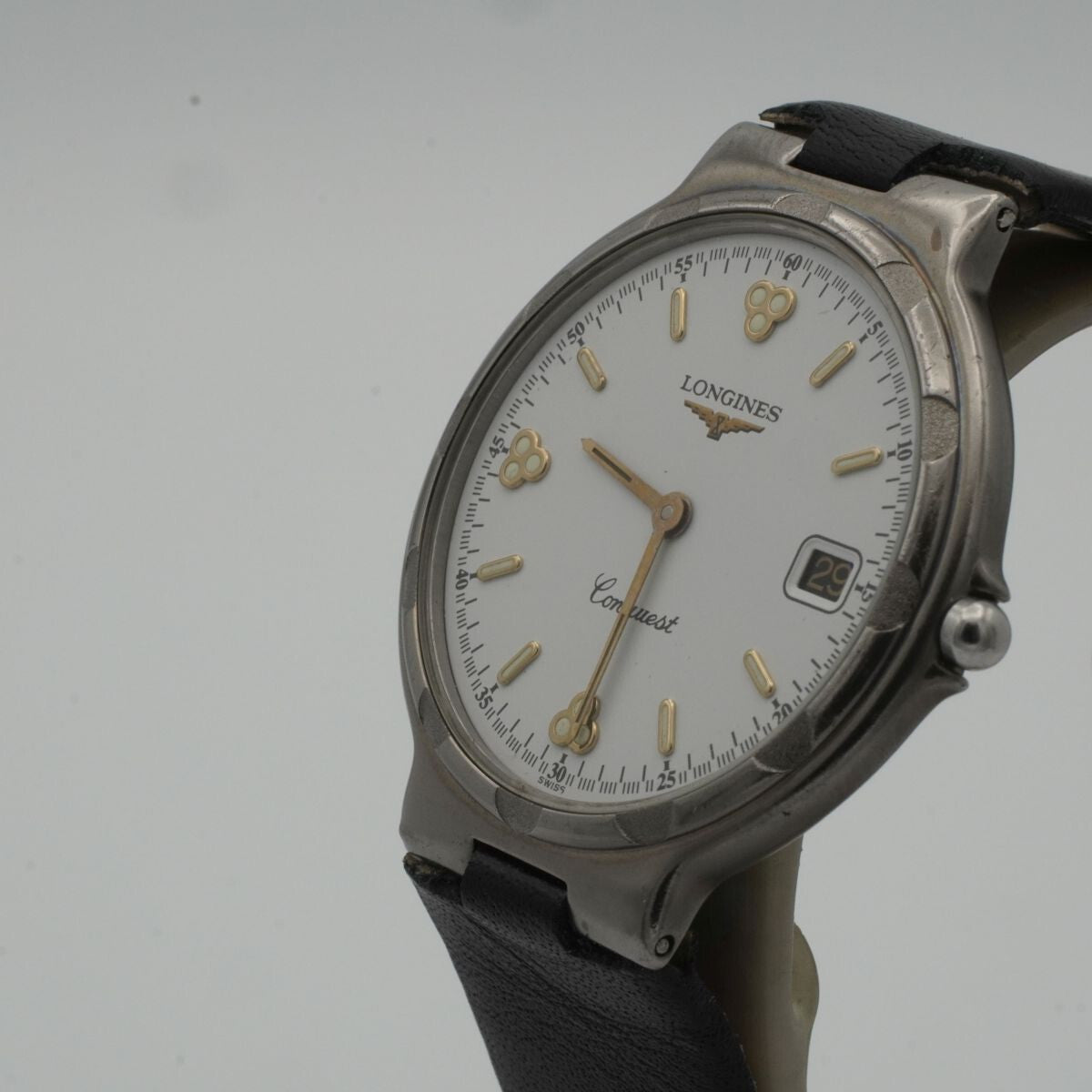LONGINES CONQUEST HERREN UHR L1.614.4 STAHL QUARTZ 34MM + LEDERBAND F5