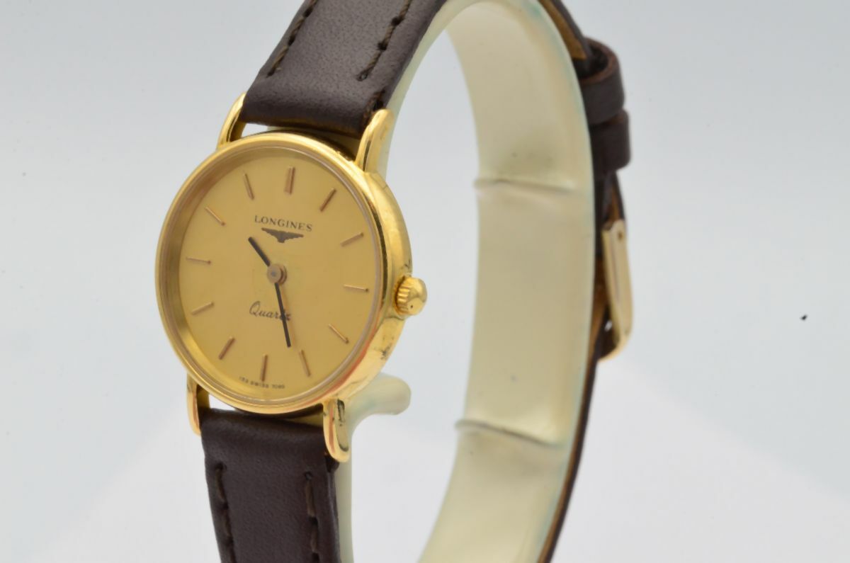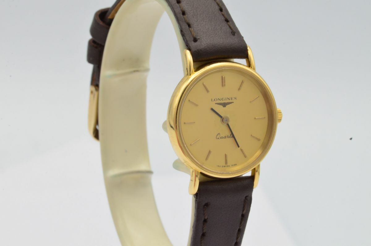 LONGINES PRESENCE 24MM QUARTZ 18K GOLD SCHÖNER ZUSTAND VINTAGE LEDER BAND 3 L062