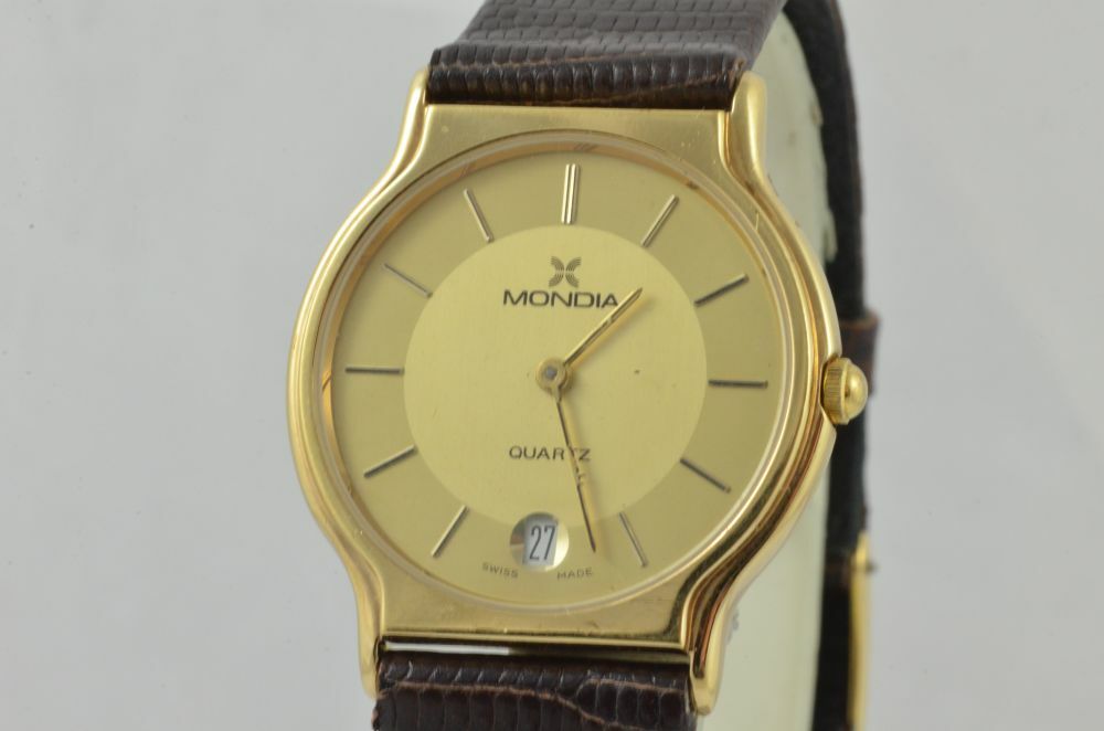 MONDIA DAMEN UHR QUARZ VINTAGE 30MM STAHL VERGOLDET ARMBANDUHR N015