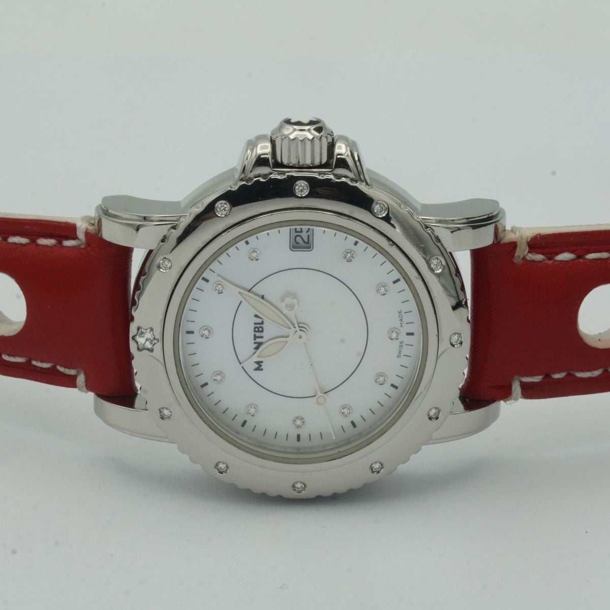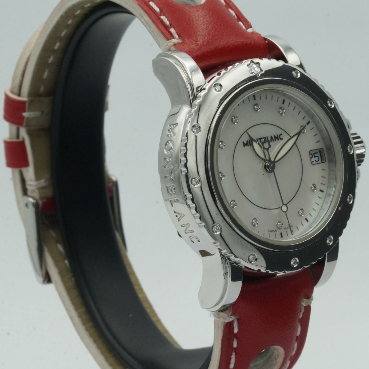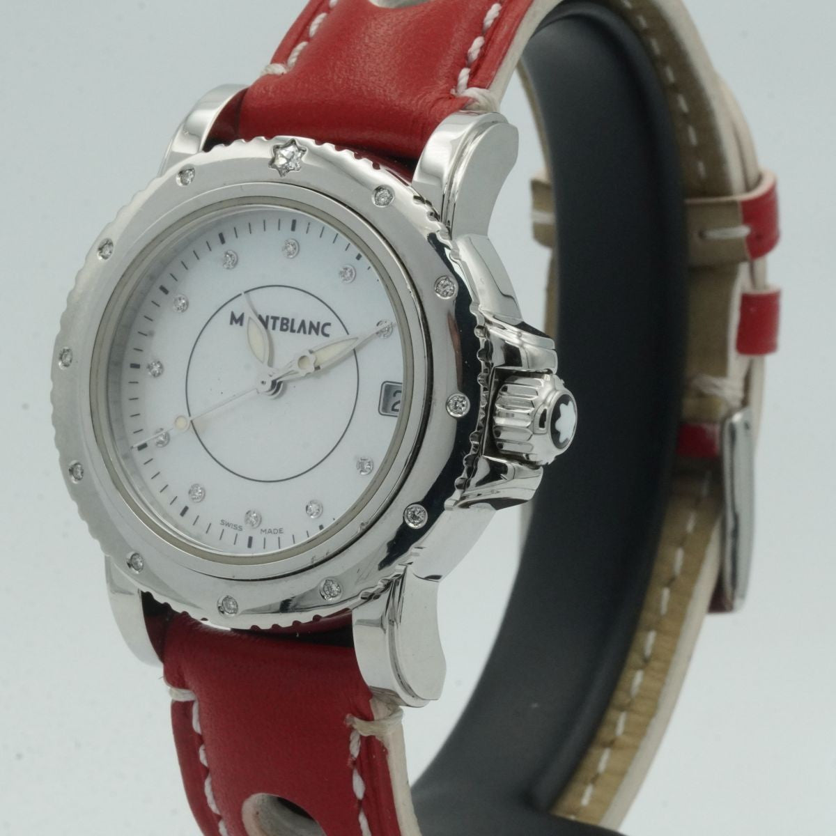 MONTBLANC SPORT QUARTZ HERREN UHR 7157 35MM SCHWARZ VINTAGE MOP BRILLIANTEN
