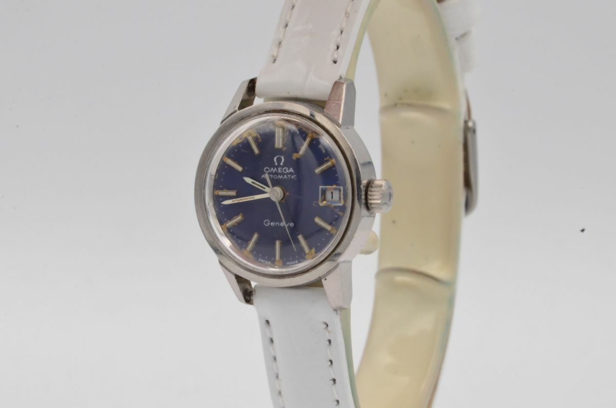 OMEGA GENEVE AUTOMATIK DAMEN UHR 22MM STAHL VINTAGE MIT LEDER BAND RAR SELTEN