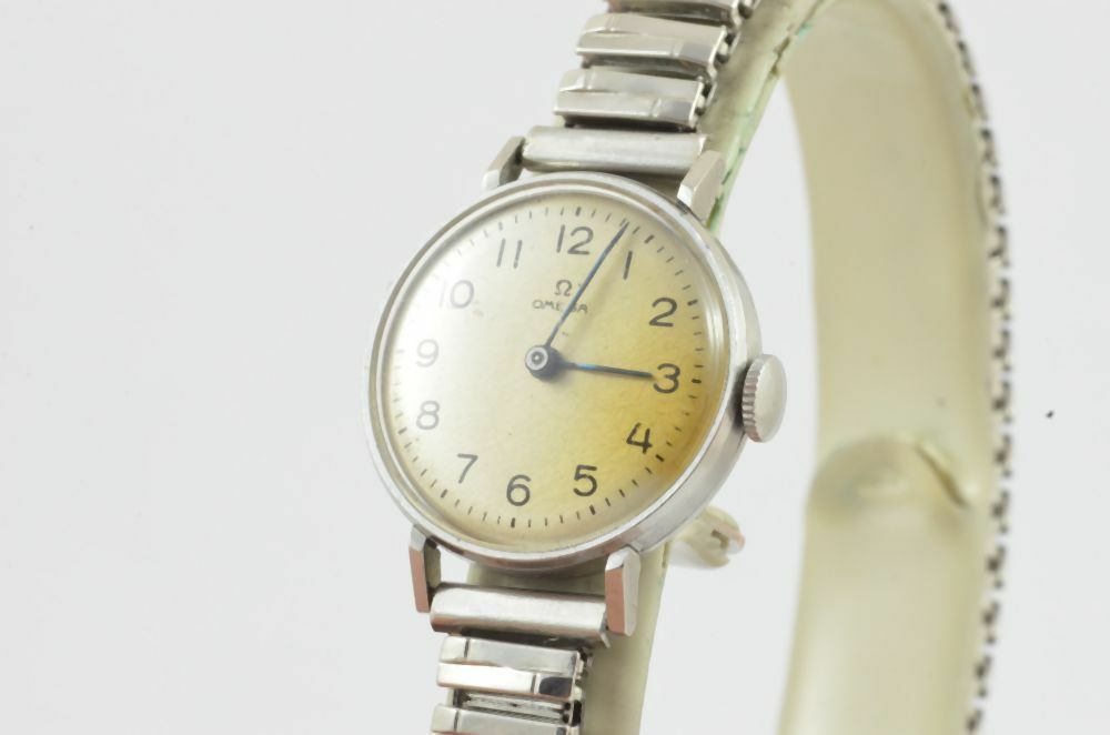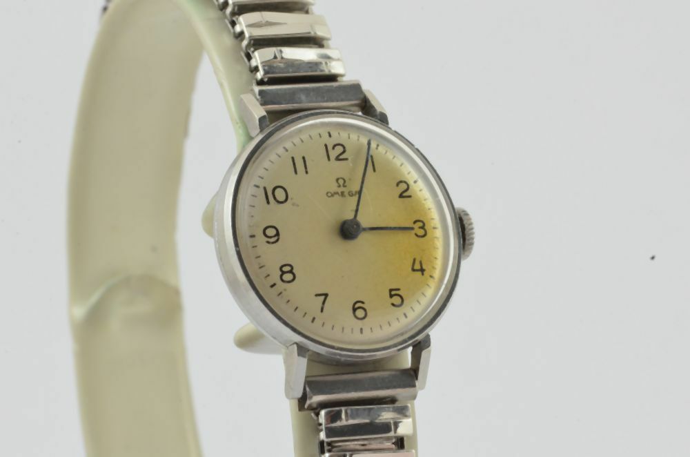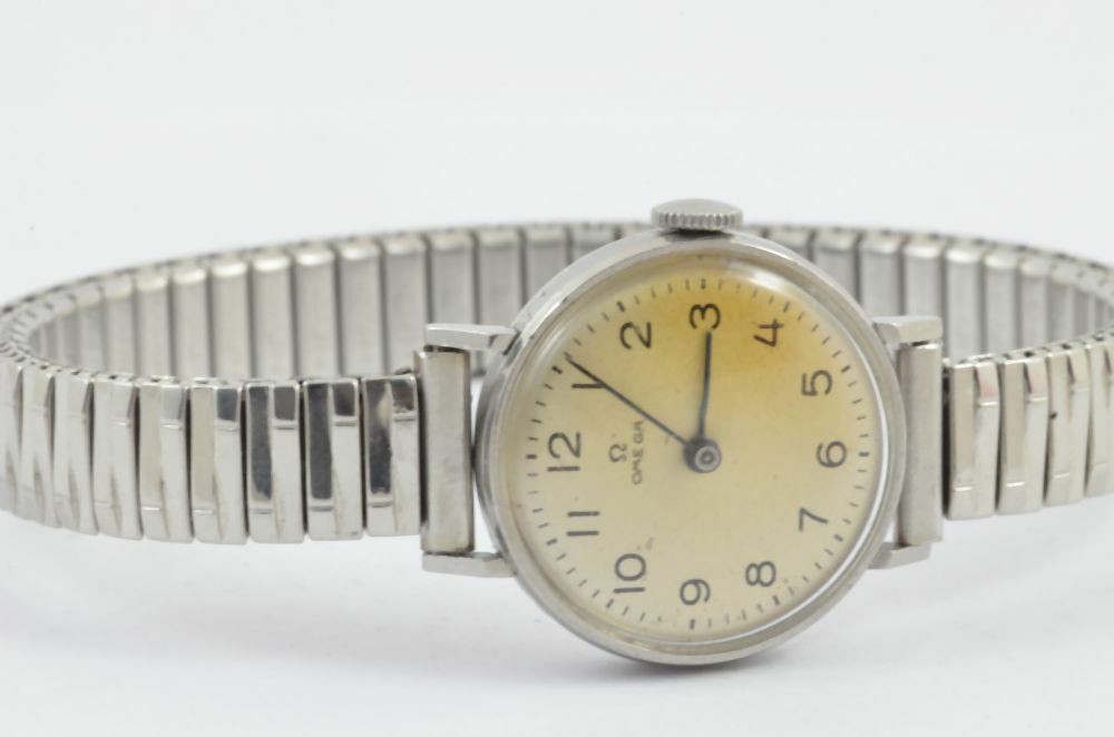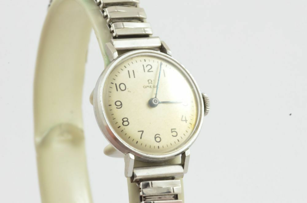 OMEGA HANDAUFZUG DAMEN UHR VINTAGE RAR 20MM STAHL RAR MIT LEDER BAND 1906