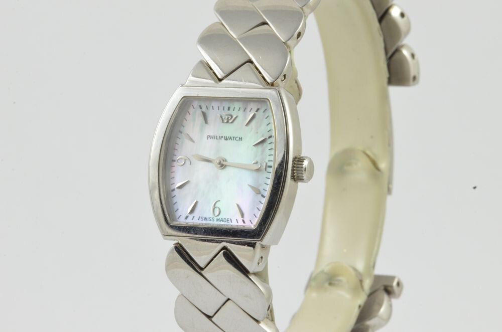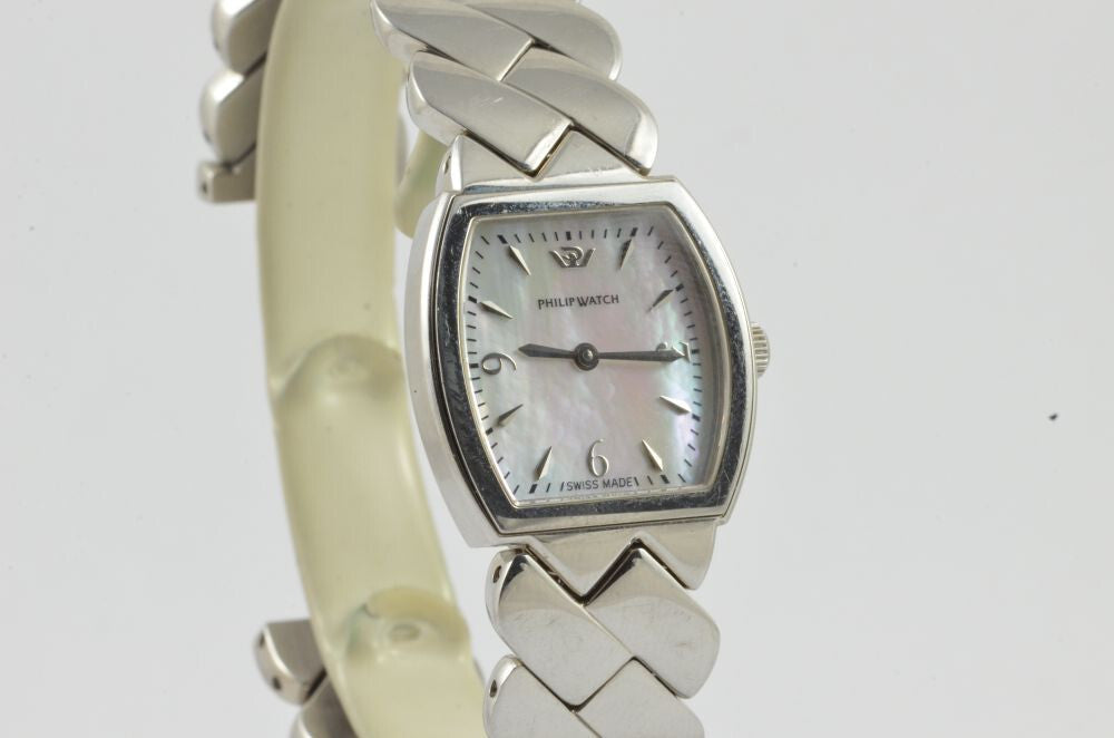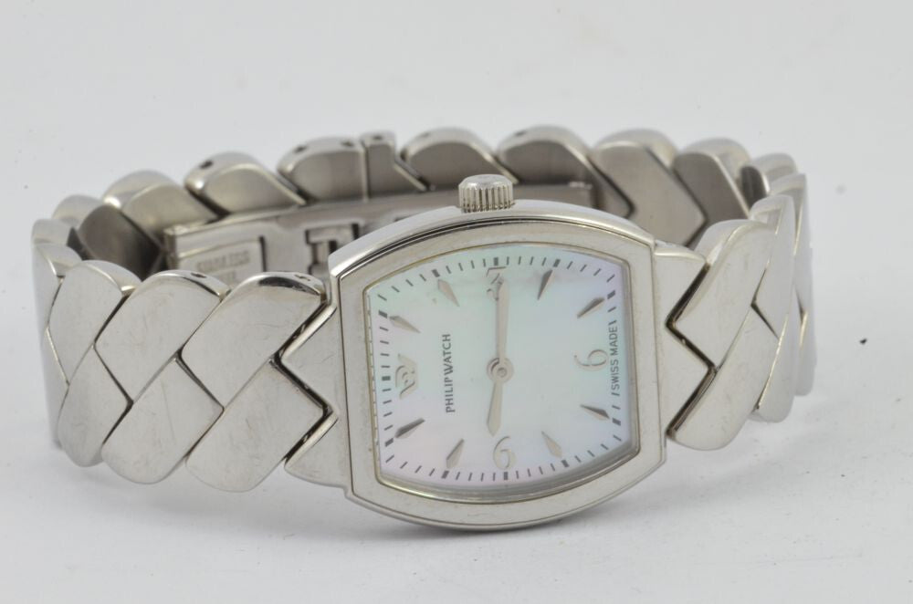 PHILIP WATCH QUARZ CHRONO DAMEN UHR STAHL VINTAGE MIT STAHL BAND RAR