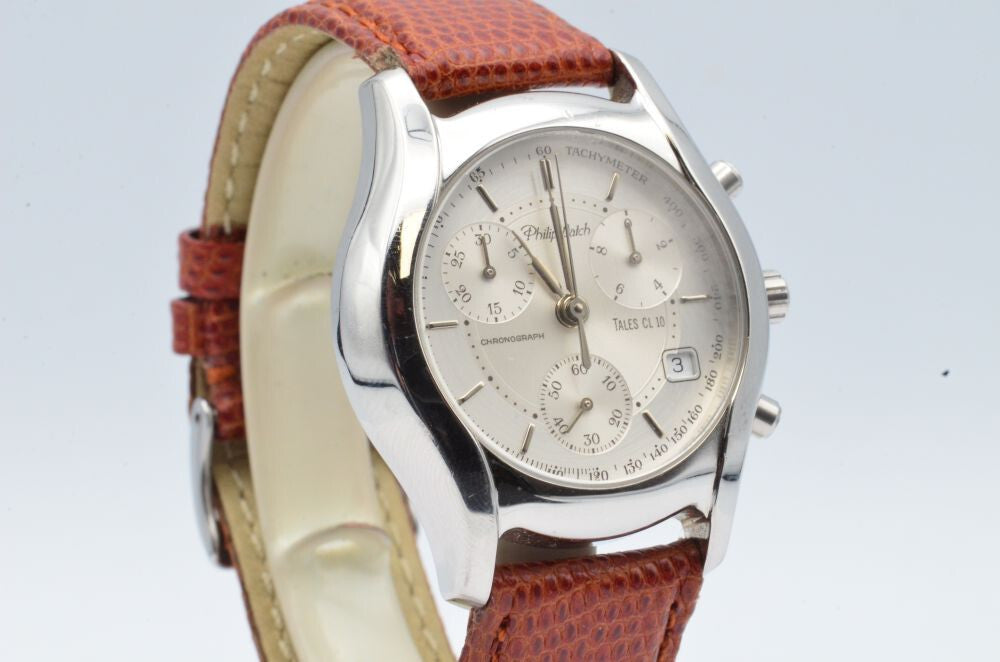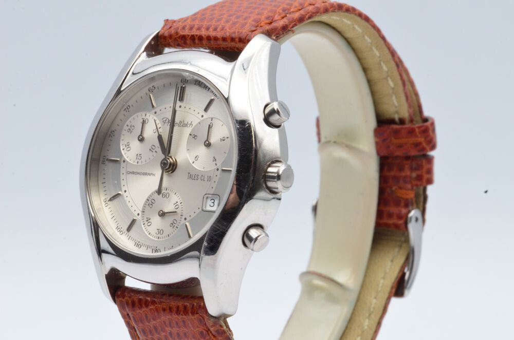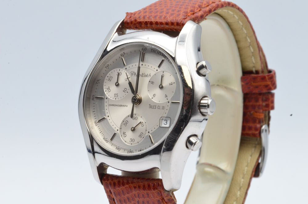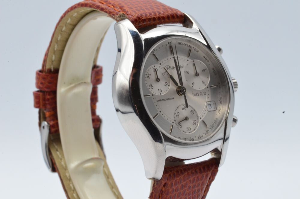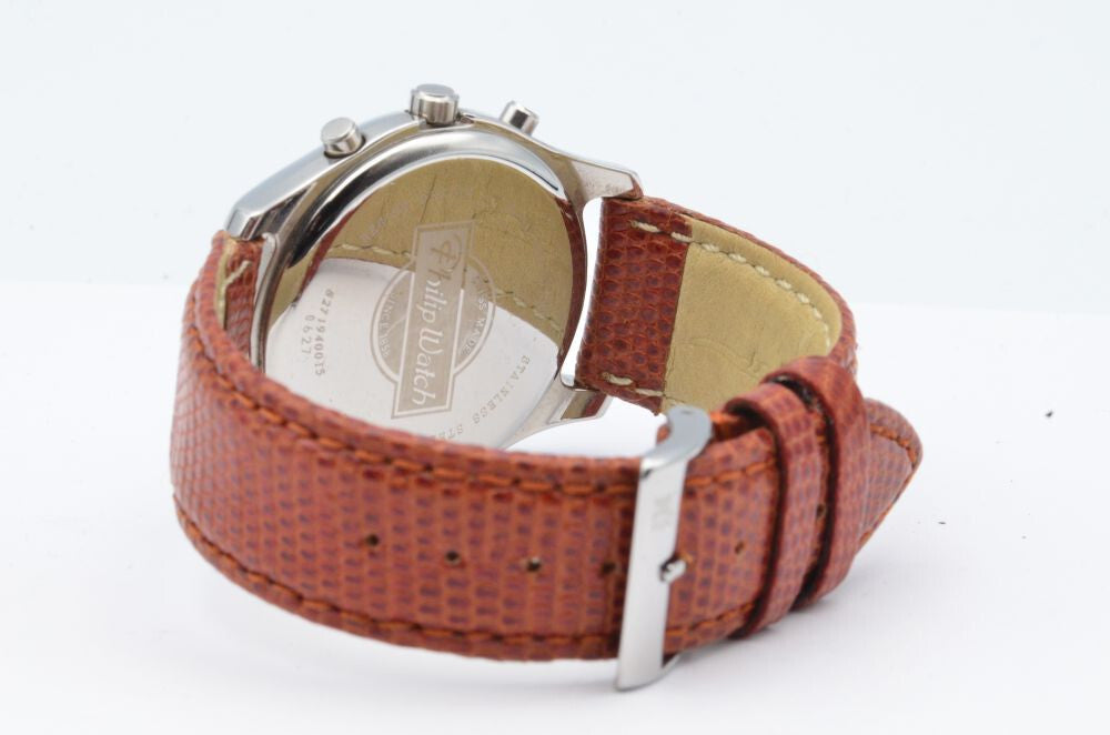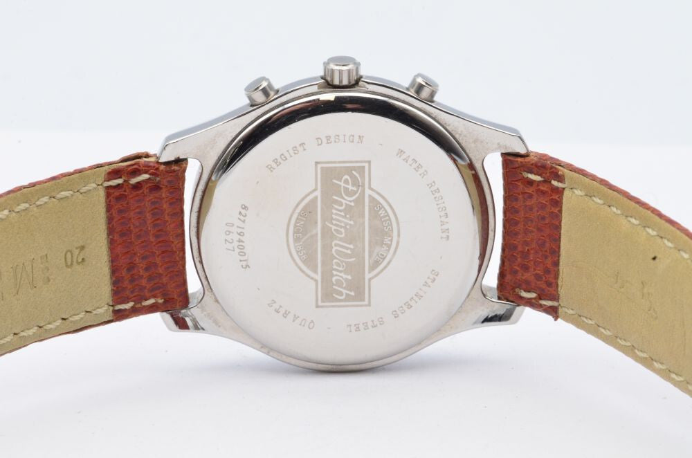 PHILIP WATCH QUARZ CHRONO HERREN UHR STAHL VINTAGE MIT LEDER BAND RAR 5