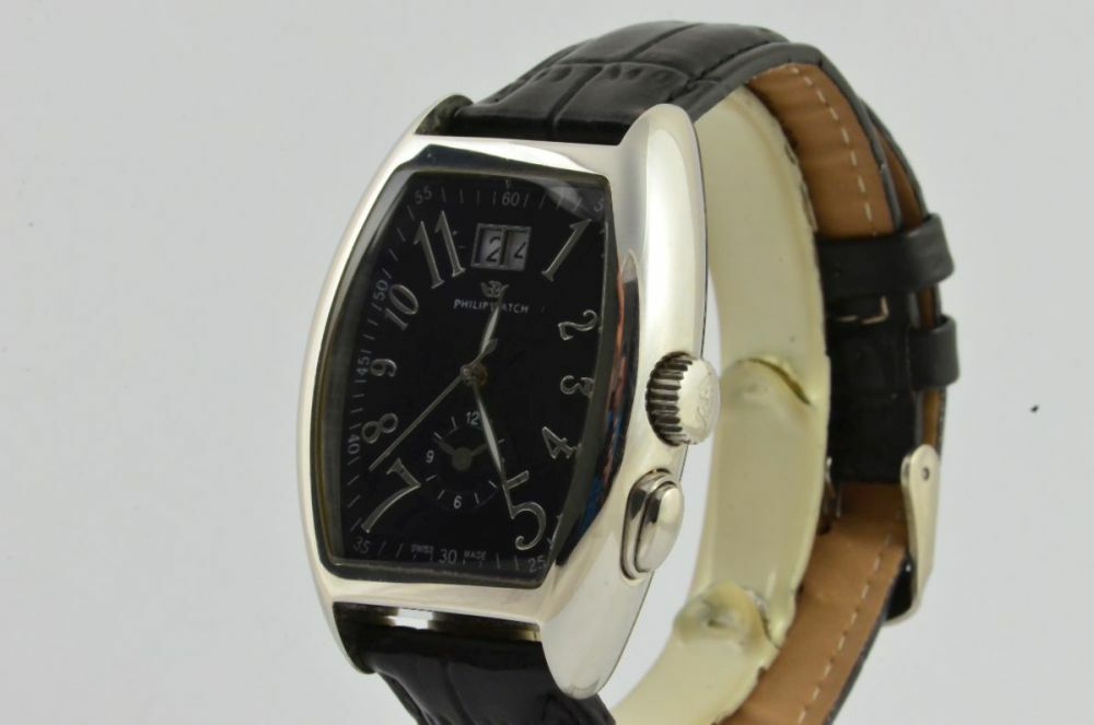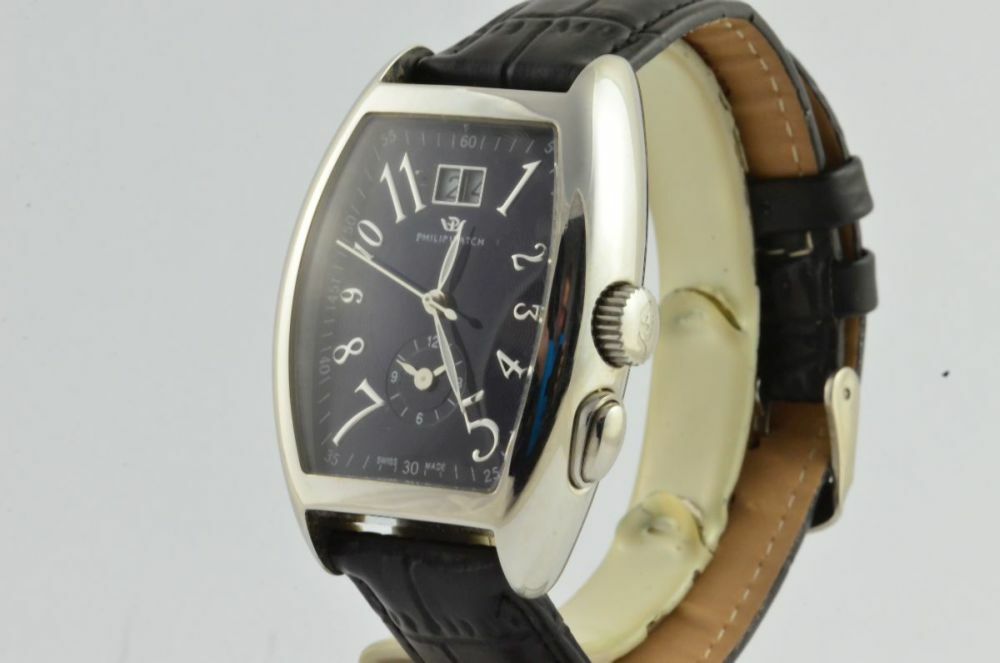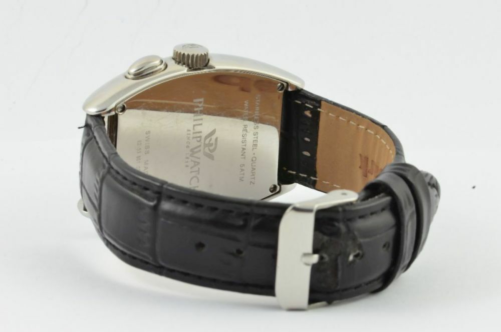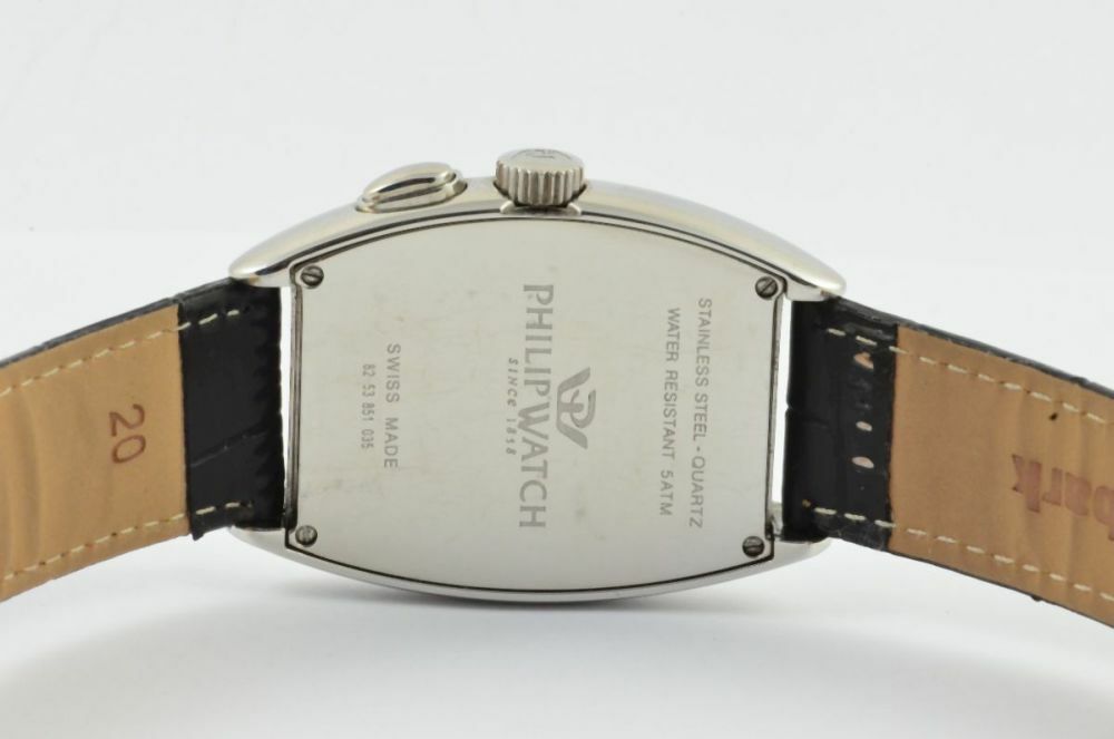 PHILIP WATCH QUARZ HERREN UHR 30MM STAHL VINTAGE MIT LEDER BAND ARMBANDUHR RAR