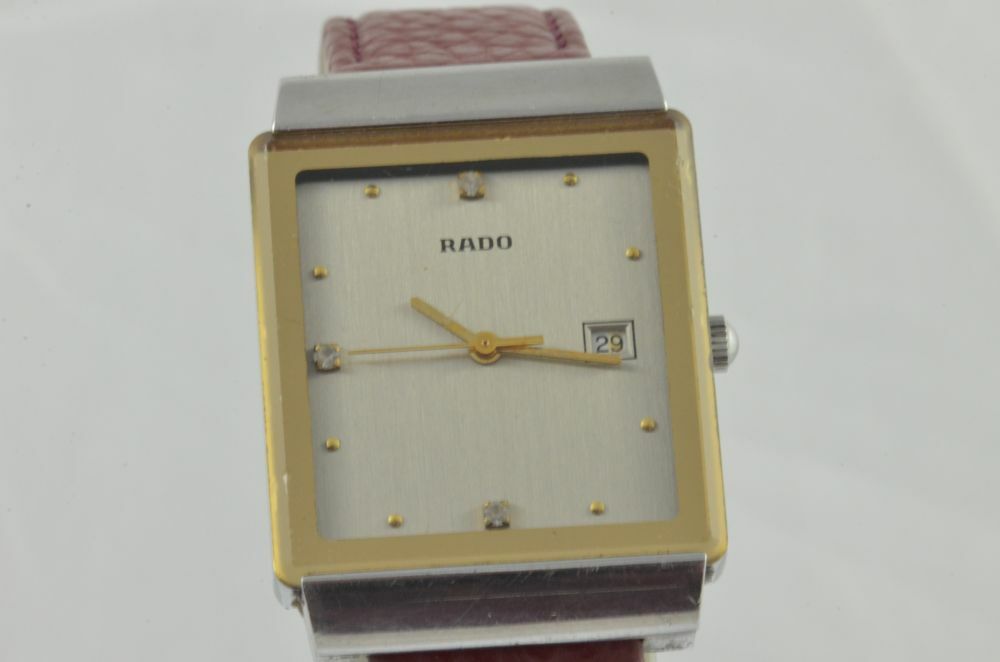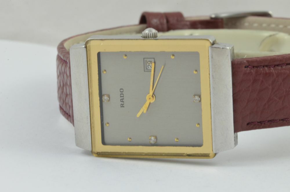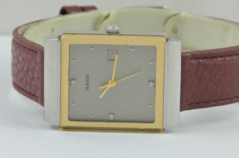 RADO DIASTAR HERREN UHR STAHL QUARZ MIT LEDER BAND VERGOLDET 28MM ARMBANDUHR