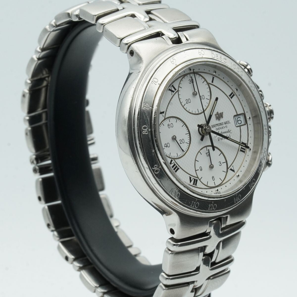 RAYMOND WEIL PARSIFAL HERREN AUTOMATIK CHRONO 39MM STAHL WEISS SCHÖNER ZUSTAND