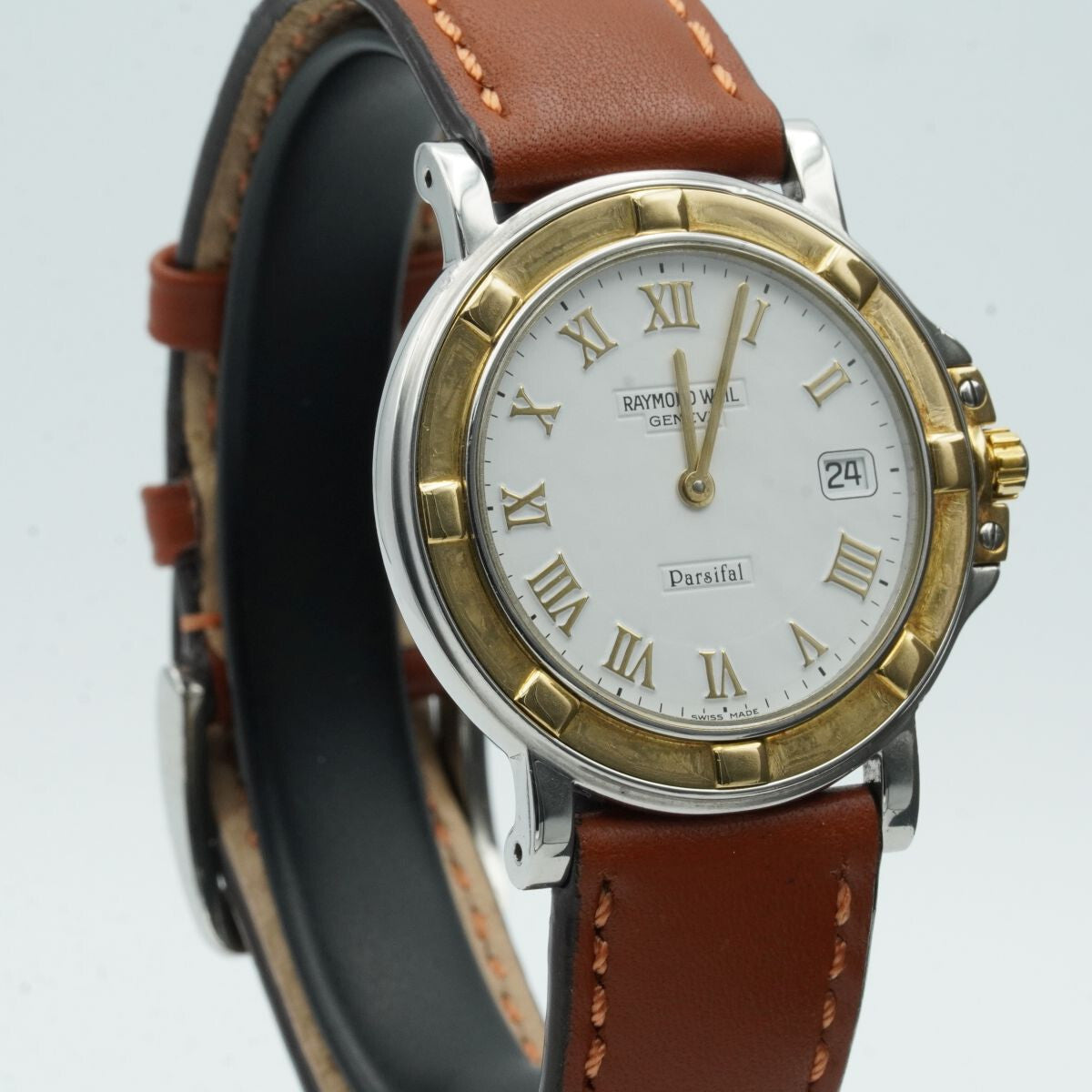 RAYMOND WEIL PARSIFAL HERREN UHR QUARZ 36MM STAHL 9530 MIT LEDER BAND ARMBANDUHR