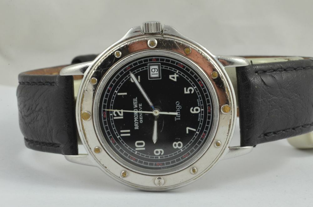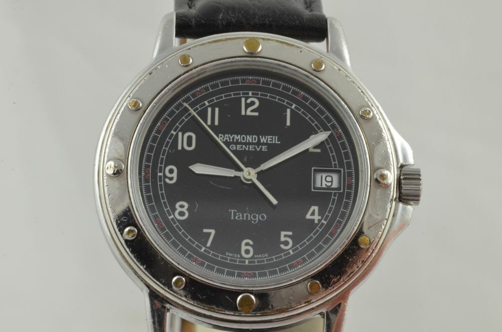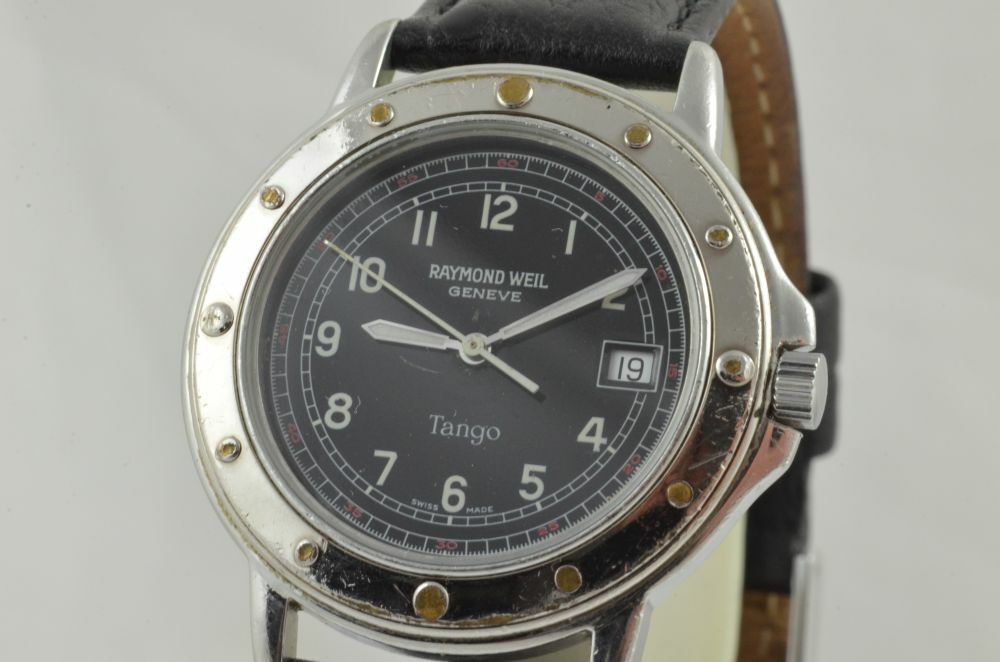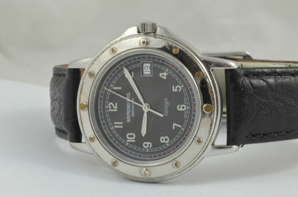 RAYMOND WEIL TANGO HERREN UHR 36MM 5560 MIT LEDER BAND QUARZ STAHL 2 ARMBANDUHR