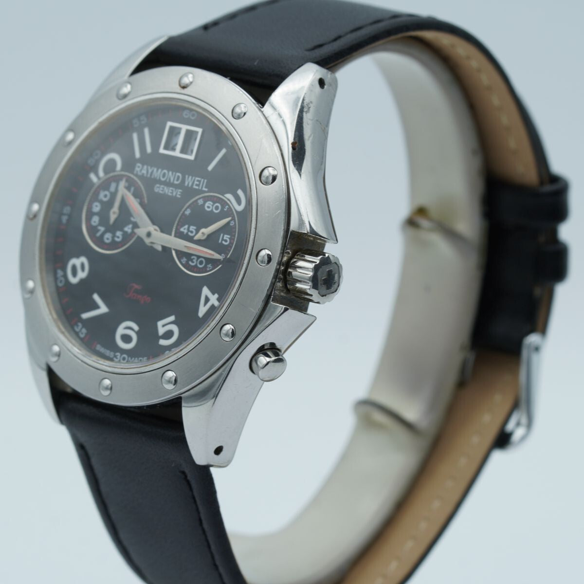 RAYMOND WEIL TANGO HERREN UHR 39MM 4795 MIT LEDER BAND QUARZ ARMBANDUHR WEISS