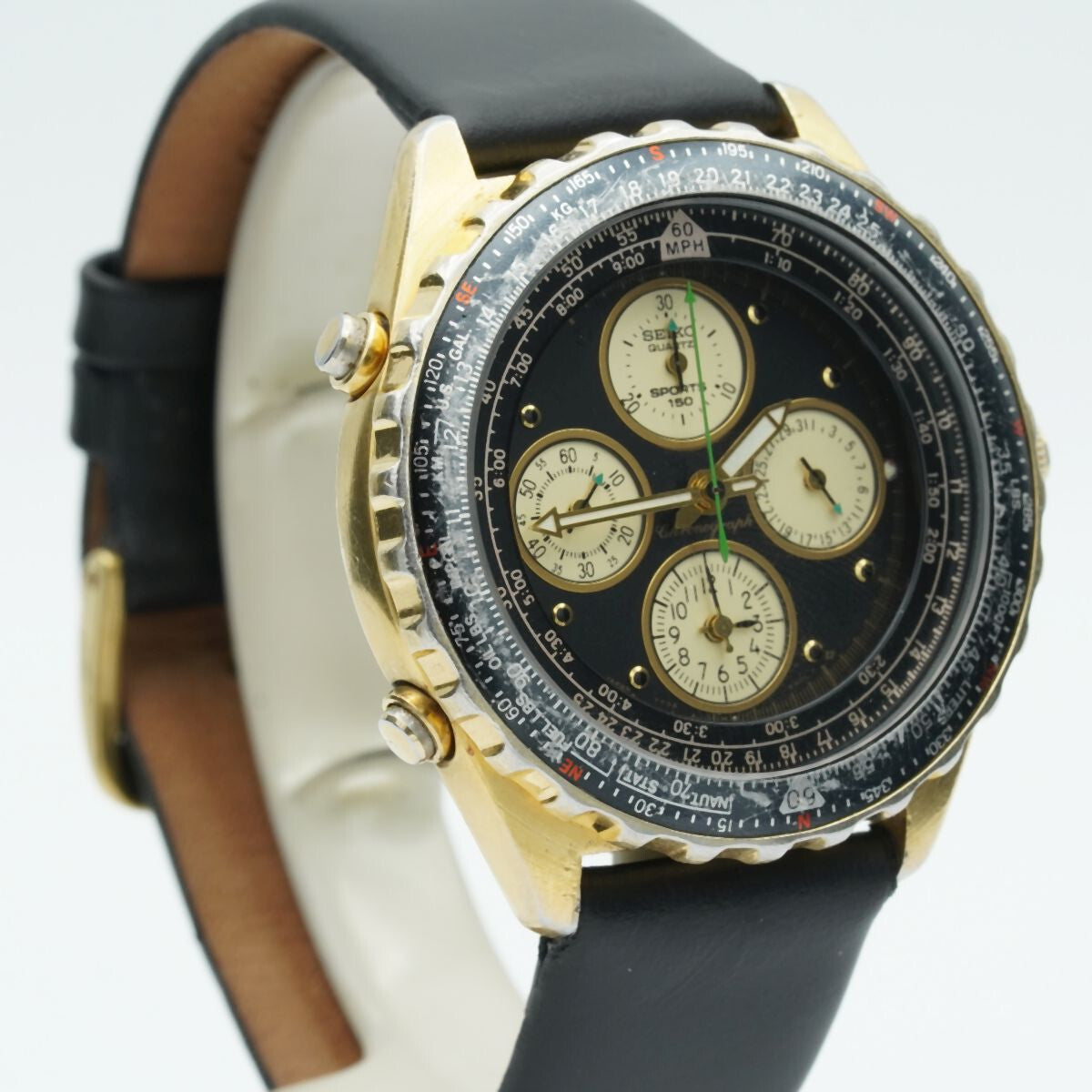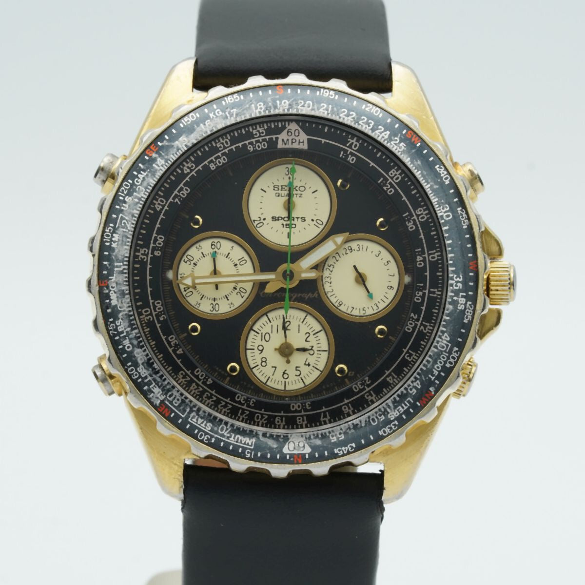 SEIKO SPORTS 150 QUARTZ 7Ter-6A00 HERREN UHR 39MM VINTAGE RAR SCHÖN VERGOLDET