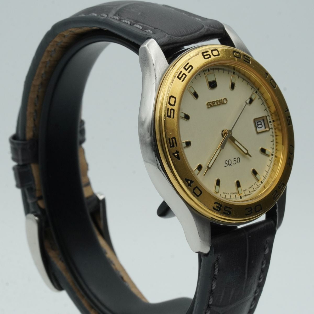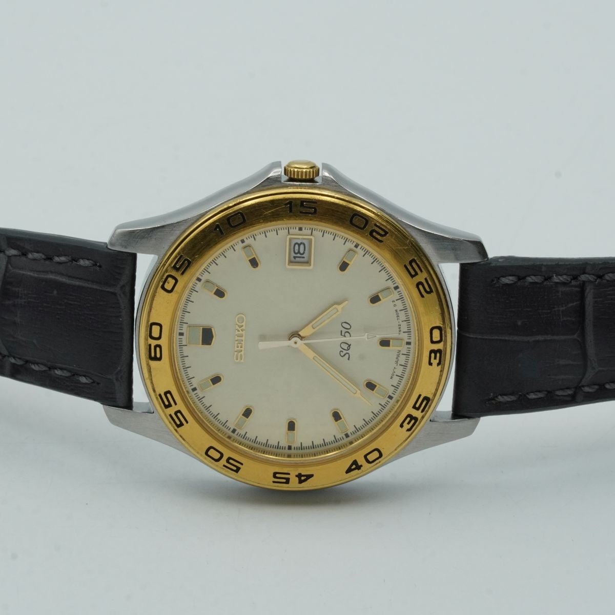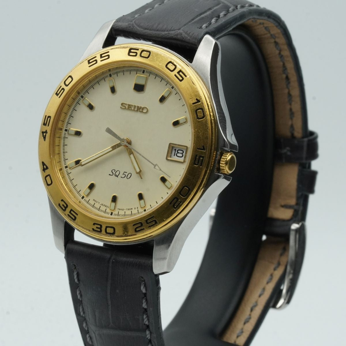 SEIKO SQ QUARZ HERREN UHR STAHL VERGOLDET 34MM VINTAGE RAR MIT LEDER BAND 2 S092