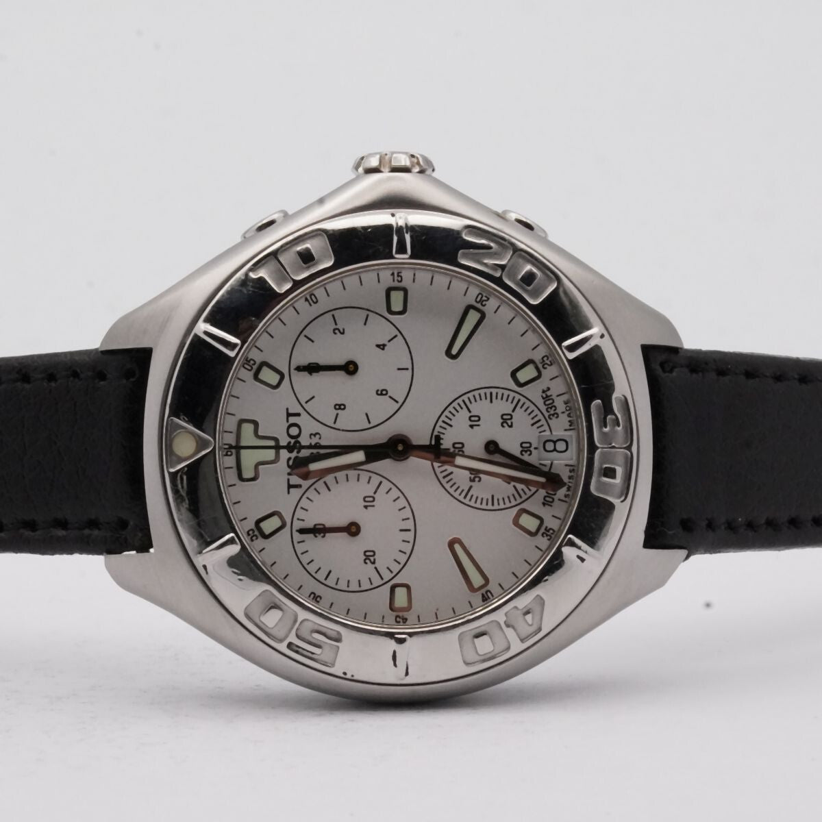 TISSOT PRS 200 QUARTZ CHRONO HERREN UHR 38MM STAHL MIT LEDER BAND S462/562 VINTA