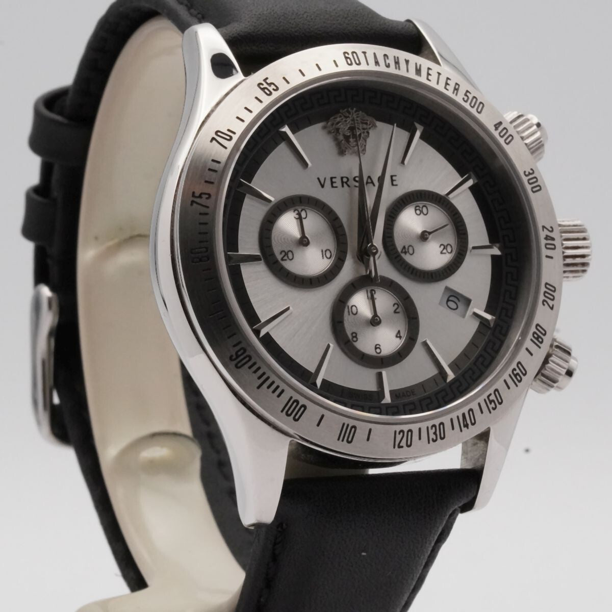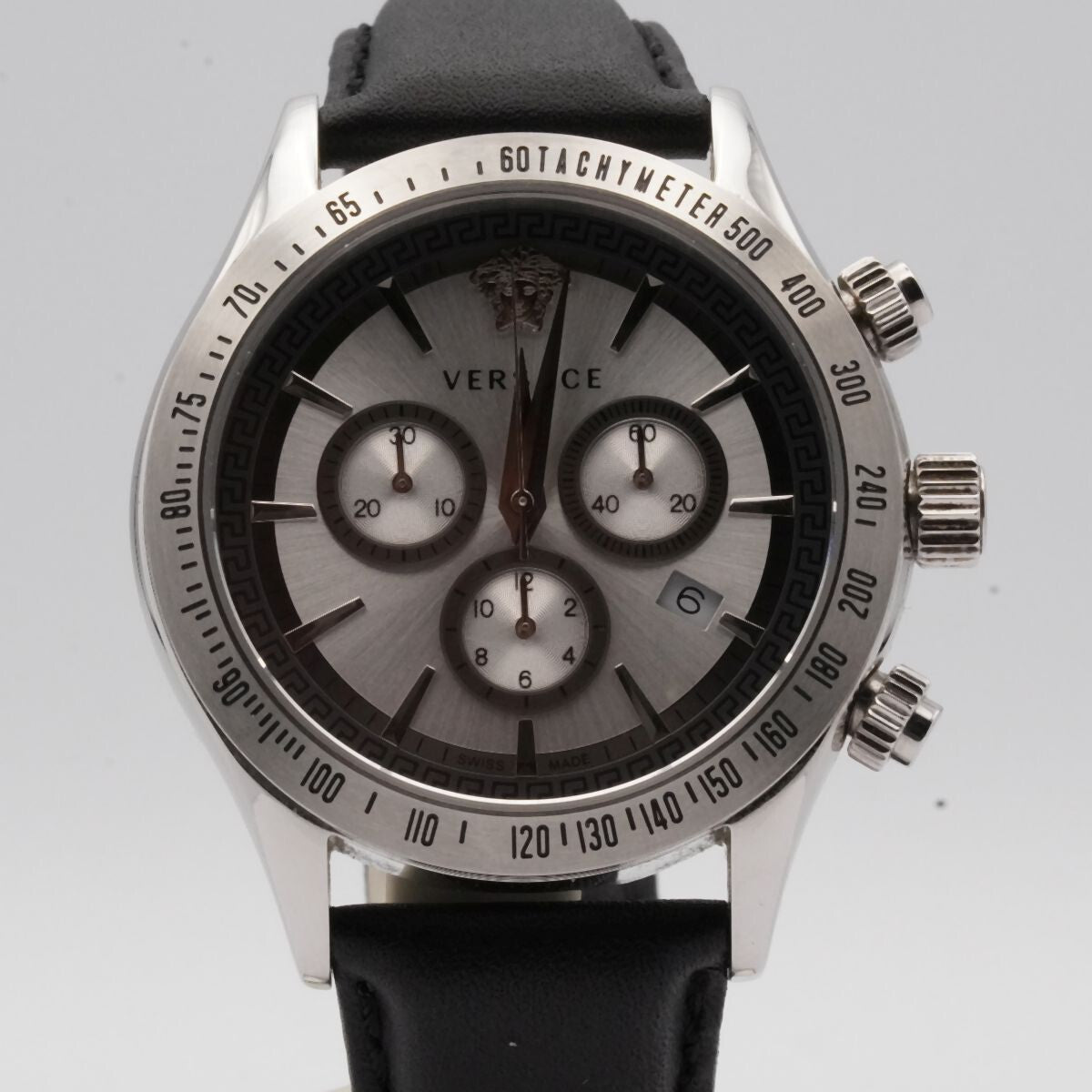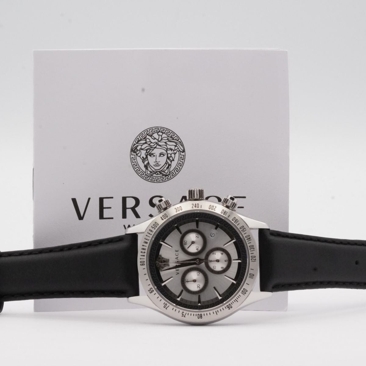VERSACE VEV7 QUARTZ CHRONO HERREN UHR 44MM STAHL MIT LEDER BAND NEUWERTIG