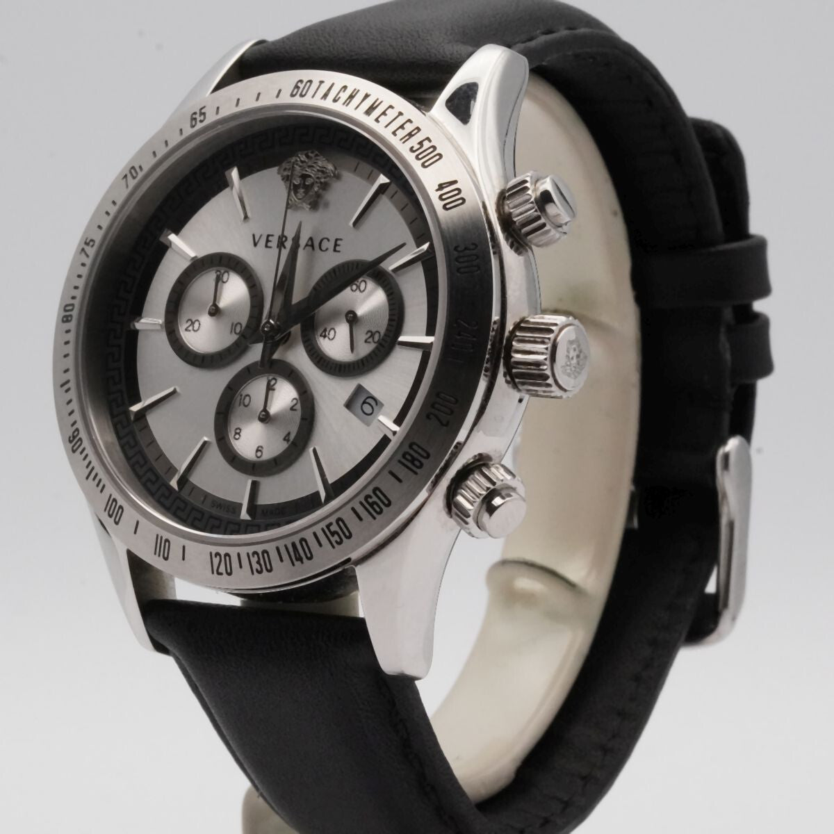 VERSACE VEV7 QUARTZ CHRONO HERREN UHR 44MM STAHL MIT LEDER BAND NEUWERTIG