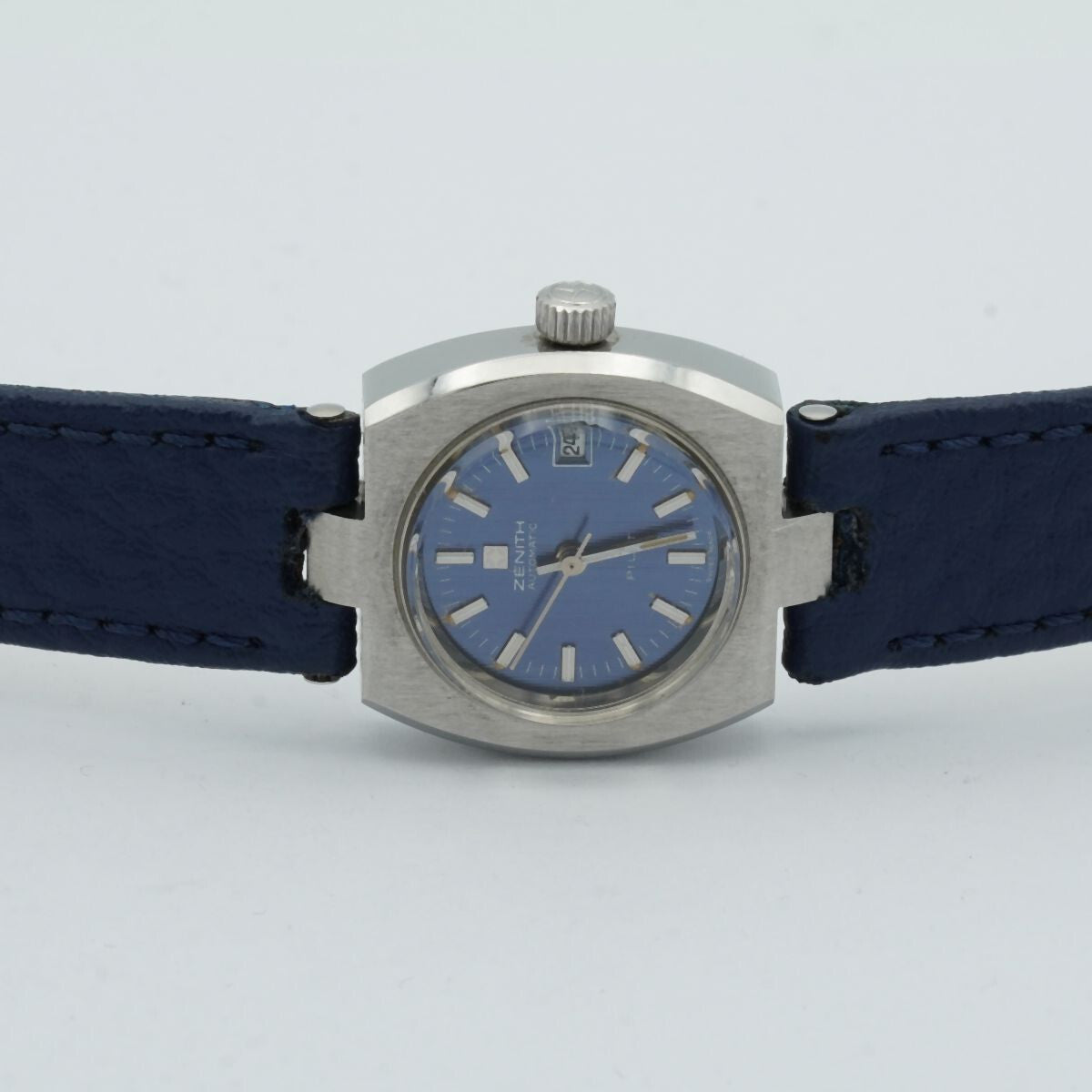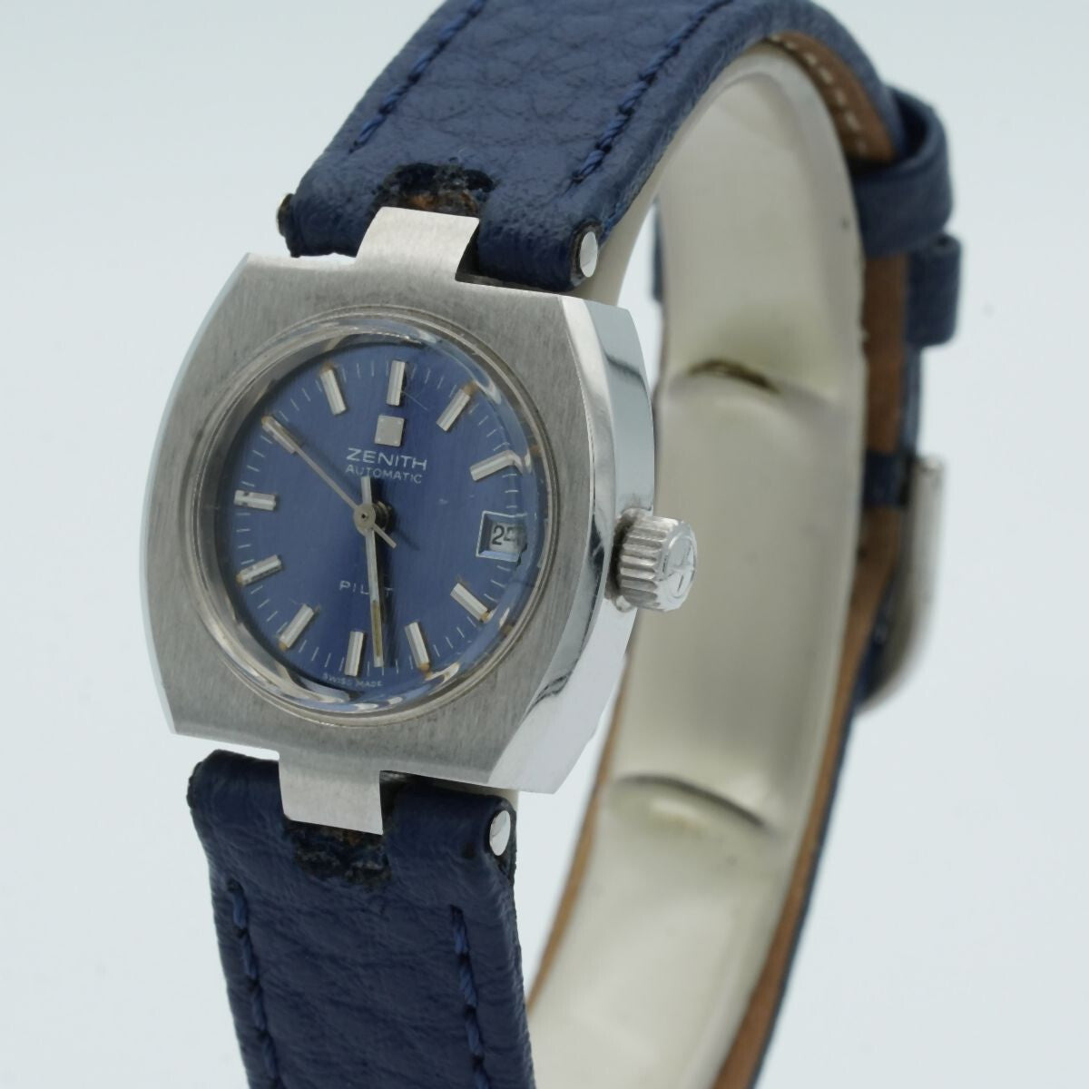 ZENITH DAMEN UHR AUTOMATIK VINTAGE 22MM STAHL SCHÖNER ZUSTAND ARMBANDUHR BLAU