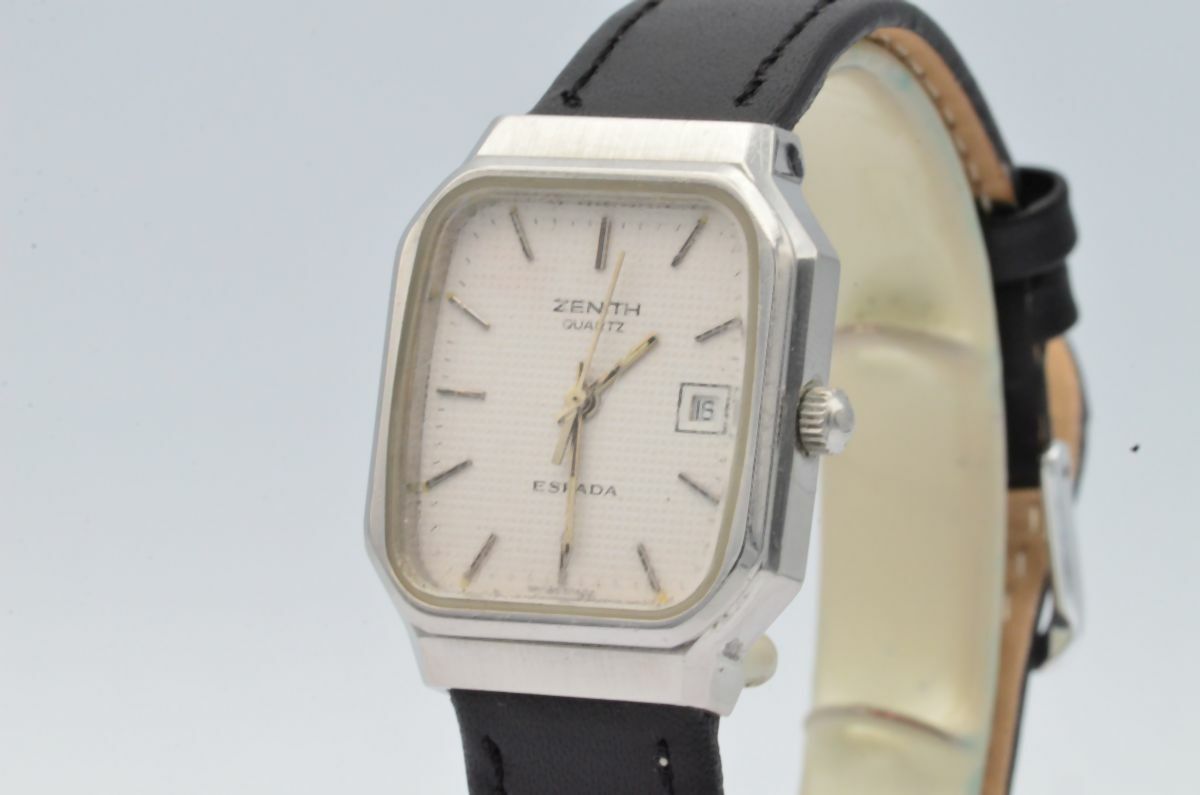 ZENITH ESPADA QUARZ DAMEN UHR 20MM STAHL VINTAGE MIT LEDER BAND RAR ARMBANDUHR