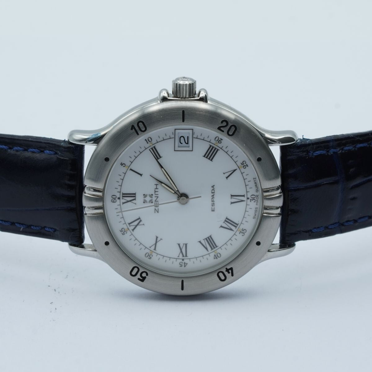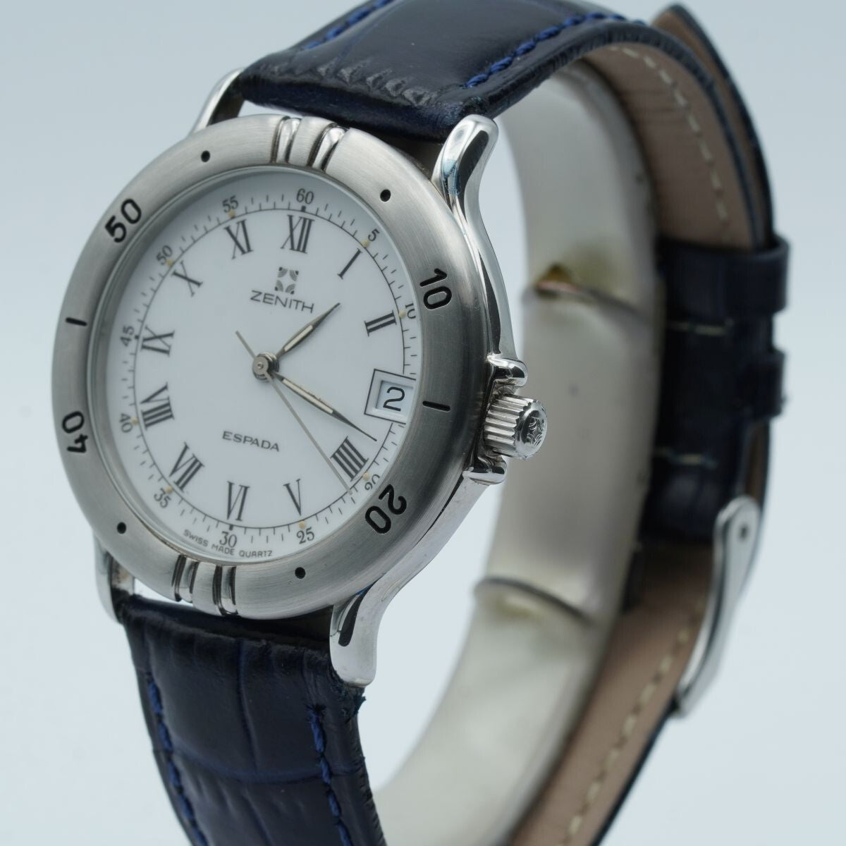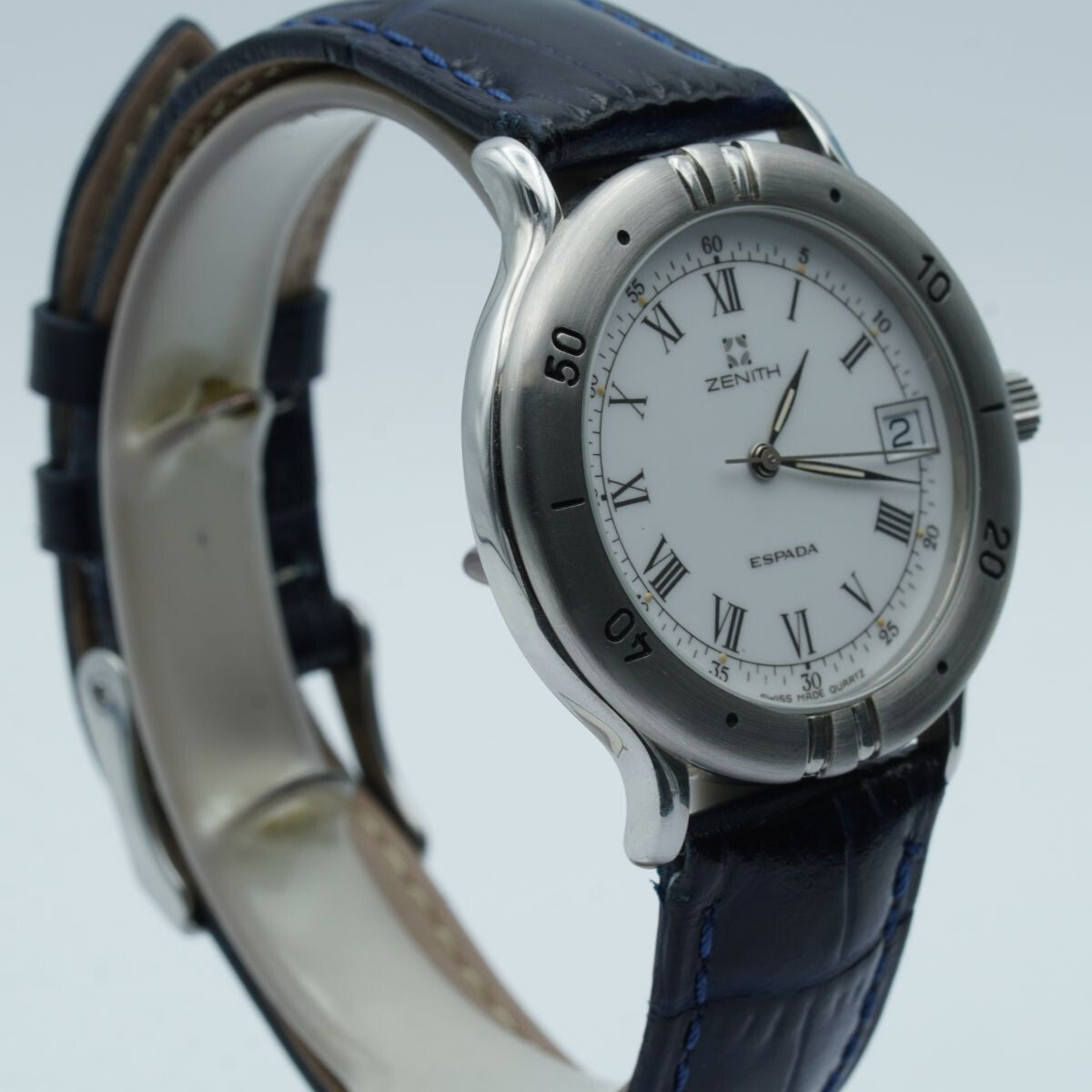ZENITH ESPADA QUARZ HERREN UHR 36MM STAHL VINTAGE LEDER BAND RAR ARMBANDUHR 4