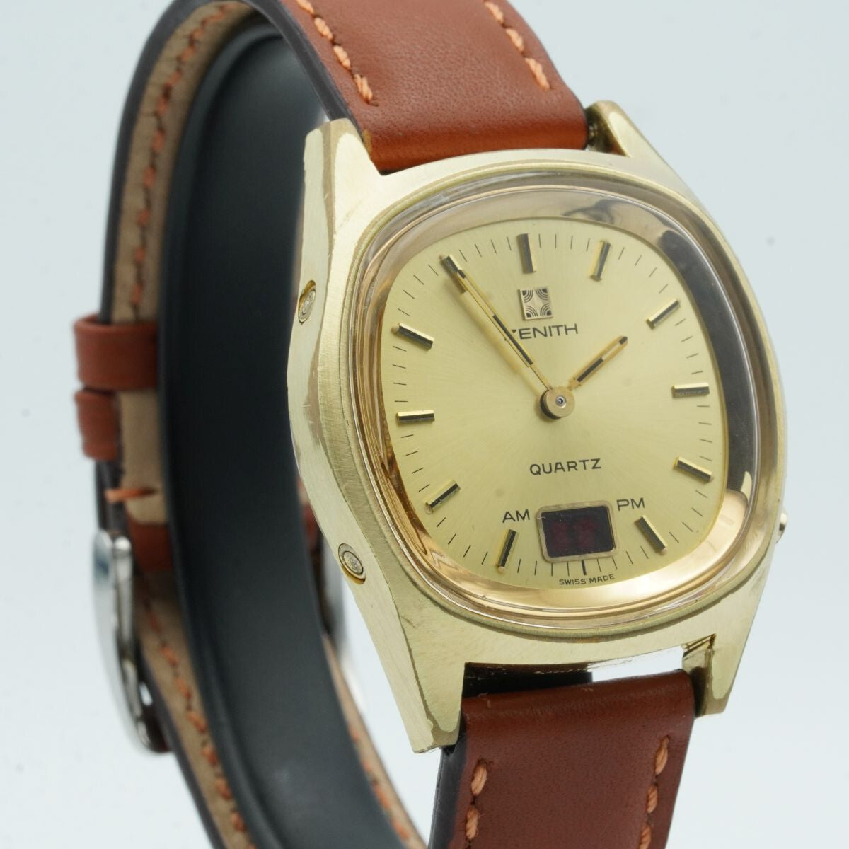 ZENITH ESPADA QUARZ HERREN UHR 36MM STAHL VINTAGE LEDER BAND RAR ARMBANDUHR 4